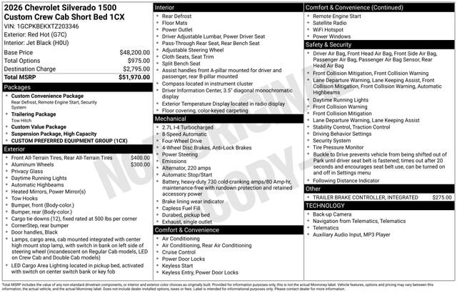 Turn every drive into something special with this Chevrolet Silverado 1500 from Salt Lake Valley Chevrolet! Designed for comfort, performance, and style, this vehicle comes fully equipped with modern technology and convenience features youâll love. Price excludes tax, title, license fee, government fees, and $449 dealer documentary service fee. While every reasonable effort is made to ensure accuracy, we are not responsible for errors or omissions, and vehicles may be sold prior to inquiry please contact the dealer to confirm availability. All financing is subject to approved credit. If youâre shopping for used cars in Salt Lake City, or searching for the perfect SUV, truck, or sedan, this Chevrolet Silverado 1500 delivers the dependability and value youâre looking for. Itâs the ideal match for your lifestyle - ready for everything from mountain adventures to city commutes. Visit Salt Lake Valley Chevrolet today and see why so many Utah drivers trust us for great deals on quality pre-owned vehicles. Explore our inventory online at www.slvchevy.com or call 801-969-8221 to schedule your test drive today! This impressive vehicle includes Custom Convenience Package (Electric Rear-Window Defogger, LED Cargo Area Lighting, and Remote Vehicle Starter System), Custom Value Package, High Capacity Suspension Package, Trailering Package (Hitch Guidance), 120-Volt Bed Mounted Power Outlet, 120-Volt Interior Power Outlet, 3.42 Rear Axle Ratio, 3.5 Monochromatic Display Driver Info Center, 4-Wheel Disc Brakes, 40/20/40 Front Split-Bench Seat, 6 Speakers, 6-Speaker Audio System, ABS brakes, Air Conditioning, Alloy wheels, AM/FM radio: SiriusXM, Apple CarPlay/Android Auto, Auto High-beam Headlights, Automatic Emergency Braking, Bluetooth® For Phone, Brake assist, Bumpers: body-color, Cloth Seat Trim, Color-Keyed Carpeting Floor Covering, Compass, Deep-Tinted Glass, Delay-off headlights, Driver door bin, Driver vanity mirror, Dual front impact airbags, Dual front side impact airbags, Electronic Cruise Control, Electronic Stability Control, Emergency communication system: OnStar, Following Distance Indicator, Forward Collision Alert, Front anti-roll bar, Front Center Armrest w/Storage, Front Frame-Mounted Black Recovery Hooks, Front Pedestrian Braking, Front reading lights, Front Rubberized Vinyl Floor Mats, Front wheel independent suspension, Fully automatic headlights, HD Rear Vision Camera, Heated door mirrors, Illuminated entry, Integrated Trailer Brake Controller, Low tire pressure warning, Manual Tilt Wheel Steering Column, Occupant sensing airbag, OnStar Services Capable, Outside temperature display, Overhead airbag, Overhead console, Panic alarm, Passenger door bin, Passenger vanity mirror, Power door mirrors, Power driver seat, Power steering, Power windows, Premium audio system: Chevrolet Infotainment 3, Radio data system, Radio: Chevrolet Infotainment 3 System, Rear reading lights, Rear Rubberized-Vinyl Floor Mats, Rear step bumper, Rear window defroster, Remote Keyless Entry, Remote keyless entry, Security system, SiriusXM Trial Subscription, Speed control, Speed-sensing steering, Split folding rear seat, Standard Tailgate, Tachometer, Teen Driver, Tilt steering wheel, Tire Pressure Monitoring System, Traction control, Trip computer, Variably intermittent wipers, Voltmeter, Wheels: 20 x 9 Bright Silver Painted Aluminum, and Wi-Fi Hot Spot Capable, offering everything you need for your next adventure.