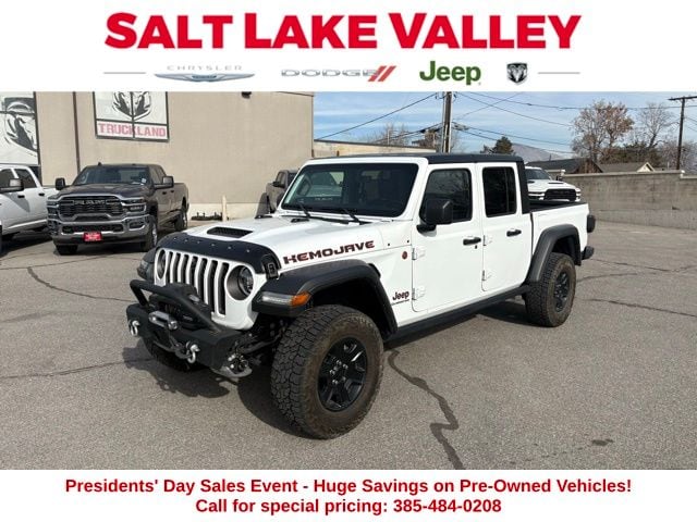 Get ready to hit the road in this Jeep Gladiator, a standout choice for drivers looking for reliability, performance, and style! This impressive vehicle is packed with premium features designed to make every drive more enjoyable. Plus, youâll enjoy a $1,000 finance savings, already included in the sale price, when you finance through one of our trusted lending partners. Whether youâre searching for used cars in Salt Lake City, a dependable SUV, or a powerful truck, this Jeep Gladiator delivers everything you need and more. Visit Salt Lake Valley Chrysler Dodge Jeep Ram today to test drive or explore our entire selection of quality pre-owned vehicles. Donât wait - shop online at www.slvcdjr.com or call 801-484-8755 to learn more! This amazing vehicle comes loaded with options like Auxiliary Switch Group (240 Amp Alternator, 700 Amp Maintenance Free Battery, and Auxiliary Switches), Cold Weather Group (Heated Front Seats and Heated Steering Wheel), LED Lighting Group (Daytime Running Lamps LED Accents, Front LED Fog Lamps, LED Park Turn Lamps, LED Premium Reflector Headlamps, and LED Taillamps), Quick Order Package 24D, Safety Group (Blind Spot & Cross Path Detection and ParkSense Rear Park Assist System), Trail Rail Management System (Exterior 115V AC Outlet and Lockable Rear Underseat Storage), Trailer Tow Package (Class IV Receiver Hitch, Heavy-Duty Engine Cooling, and Trailer Hitch Zoom), 4-Wheel Disc Brakes, 4.10 Rear Axle Ratio, 9 Speakers, 97 MPH Vehicle Max Speed Calibration, ABS brakes, Air Conditioning, Alloy wheels, AM/FM radio: SiriusXM, Apple CarPlay/Android Auto, Auto-dimming Rear-View mirror, Automatic temperature control, Black 3-Piece Hard Top, Brake assist, Compass, Delay-off headlights, Driver door bin, Driver vanity mirror, Dual front impact airbags, Dual front side impact airbags, Electronic Stability Control, Emergency communication system: SiriusXM Guardian, Freedom Panel Storage Bag, Front anti-roll bar, Front Bucket Seats, Front Center Armrest w/Storage, Front dual zone A/C, Front fog lights, Front License Plate Bracket, Front reading lights, Fully automatic headlights, Garage door transmitter, Heated door mirrors, Heavy Duty Suspension w/Gas Shocks, Illuminated entry, Integrated Off-Road Camera, Integrated roll-over protection, Leather steering wheel, Low tire pressure warning, MOPAR All-Weather Slush Mats, MOPAR Spray In Bedliner, Navigation System, Occupant sensing airbag, Outside temperature display, Panic alarm, ParkView Rear Back-Up Camera, Passenger door bin, Passenger vanity mirror, Power door mirrors, Power steering, Power windows, Premium Cloth Seats w/Sport Bolsters, Radio data system, Radio: Uconnect 4C Nav w/8.4" Display, Rear anti-roll bar, Rear reading lights, Rear Sliding Window, Rear Window Defroster, Remote keyless entry, Remote Start System, Security system, Selec-Trac Full Time 4WD System, Speed control, Split folding rear seat, Steering wheel mounted audio controls, Tachometer, Telescoping steering wheel, Tilt steering wheel, Traction control, Trip computer, Variably intermittent wipers, Voltmeter, and Wheels: 17" x 7.5" Low Gloss Black Aluminum, making it the perfect choice for your next adventure. Jeep Details: