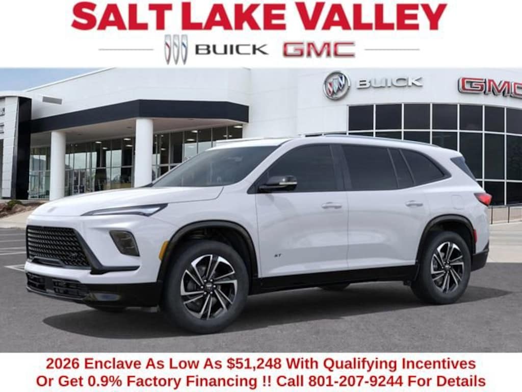 2026 Buick Enclave Sport Touring 4D Sport Utility ridescent White Tricoat 2.5L DOHC AWD --- Please note that the final selling price does not include tax, tag, title, documentation fees, dealer-installed options, or pricing adjustments due to market demand. Financing through GM Financial is required for all discounts to be applied. Special finance offers may not be combined with some factory incentives. While we strive for accuracy, errors may occur, so please verify all information with a customer service representative. For the most accurate pricing, call us at (801) 265-1511 or visit our dealership in person. Prices and payments are subject to change based on manufacturer incentives. - Price includes $1,500 trade in allowance program for customers that own a 2018 or newer passenger car or truck with less than 80,000 miles and trade in their vehicle towards the purchase of a new 2025-2026 Buick or GMC. Some restrictions may apply. Contact dealer for details - Price includes $1,000 Down Payment Assistance. Must Finance with GM Financial