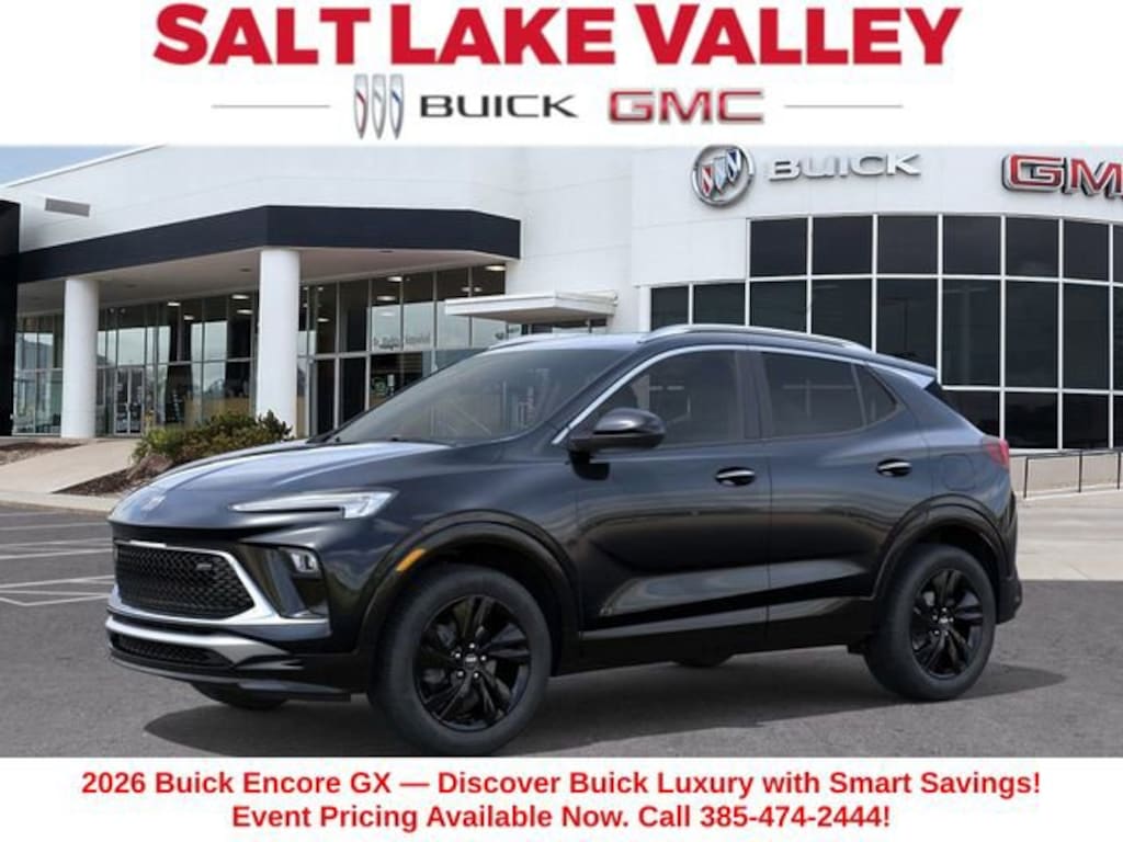 2026 Buick Encore GX Sport Touring 4D Sport Utility Ebony Twilight Metallic ECOTEC 1.3L Turbo AWD 26/28 City/Highway MPG --- Please note that the final selling price does not include tax, tag, title, documentation fees, dealer-installed options, or pricing adjustments due to market demand. Financing through GM Financial is required for all discounts to be applied. Special finance offers may not be combined with some factory incentives. While we strive for accuracy, errors may occur, so please verify all information with a customer service representative. For the most accurate pricing, call us at (801) 265-1511 or visit our dealership in person. Prices and payments are subject to change based on manufacturer incentives. - Price includes $1,500 trade in allowance program for customers that own a 2018 or newer passenger car or truck with less than 80,000 miles and trade in their vehicle towards the purchase of a new 2025-2026 Buick or GMC. Some restrictions may apply. Contact dealer for details - Price includes $1,000 Down Payment Assistance. Must Finance with GM Financial