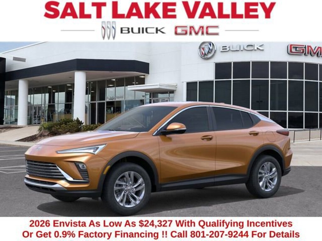 2026 Buick Envista Preferred 4D Sport Utility Copper Ice Metallic ECOTEC 1.2L Turbo FWD 28/32 City/Highway MPG --- Please note that the final selling price does not include tax, tag, title, documentation fees, dealer-installed options, or pricing adjustments due to market demand. Financing through GM Financial is required for all discounts to be applied. Special finance offers may not be combined with some factory incentives. While we strive for accuracy, errors may occur, so please verify all information with a customer service representative. For the most accurate pricing, call us at (801) 265-1511 or visit our dealership in person. Prices and payments are subject to change based on manufacturer incentives. - Price includes $1,500 trade in allowance program for customers that own a 2018 or newer passenger car or truck with less than 80,000 miles and trade in their vehicle towards the purchase of a new 2025-2026 Buick or GMC. Some restrictions may apply. Contact dealer for details - Price includes $1,000 Down Payment Assistance. Must Finance with GM Financial