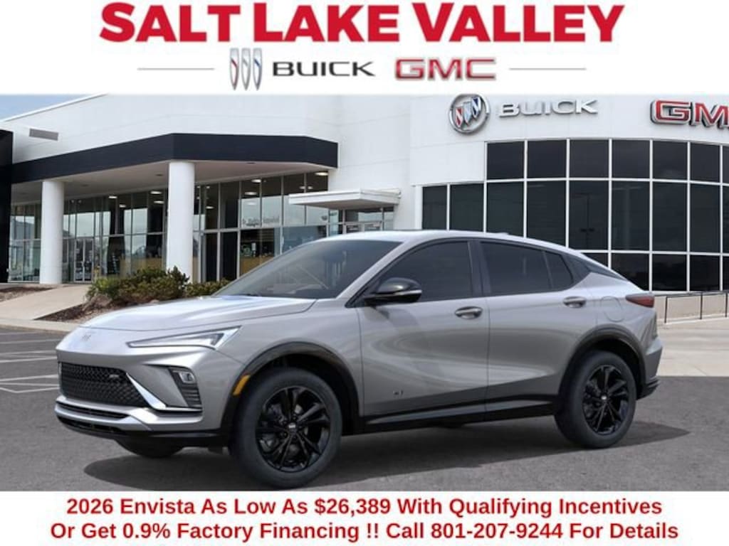2026 Buick Envista Sport Touring 4D Sport Utility Moonstone Gray Metallic ECOTEC 1.2L Turbo FWD 28/32 City/Highway MPG --- Please note that the final selling price does not include tax, tag, title, documentation fees, dealer-installed options, or pricing adjustments due to market demand. Financing through GM Financial is required for all discounts to be applied. Special finance offers may not be combined with some factory incentives. While we strive for accuracy, errors may occur, so please verify all information with a customer service representative. For the most accurate pricing, call us at (801) 265-1511 or visit our dealership in person. Prices and payments are subject to change based on manufacturer incentives. - Price includes $1,500 trade in allowance program for customers that own a 2018 or newer passenger car or truck with less than 80,000 miles and trade in their vehicle towards the purchase of a new 2025-2026 Buick or GMC. Some restrictions may apply. Contact dealer for details - Price includes $1,000 Down Payment Assistance. Must Finance with GM Financial