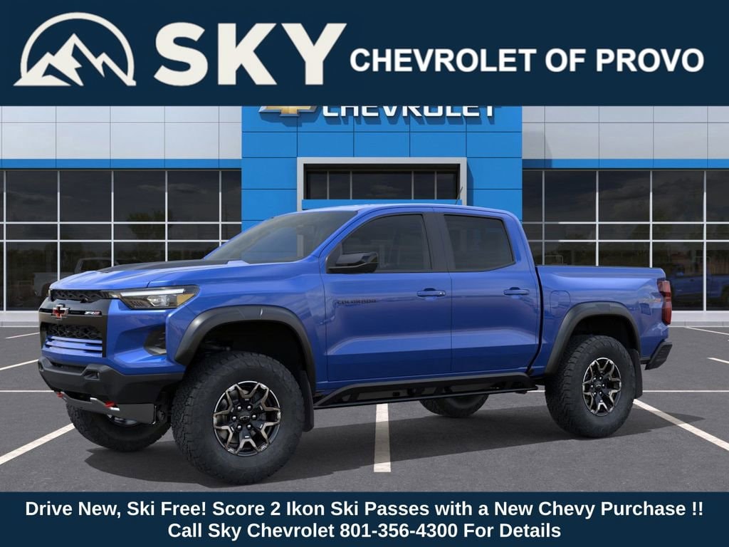 Experience the new Chevrolet Colorado, available now at Sky Chevrolet of Provo! With bold design, advanced technology, and dependable performance, Chevrolet makes every mile more exciting. From Utah Valleyâs city streets to mountain canyon drives, the Colorado is built to handle it all with confidence. Call 801-356-4300 today to schedule your test drive and see what makes it stand out! Reef Blue Metallic 2025 Chevrolet Colorado ZR2 4WD 8-Speed Automatic 2.7L I4 Turbocharged DOHC 16V LEV3-ULEV50 310hp 4WD. Fall Savings $1,000 Down Payment Assistance. Must Finance with GM Financial. $1,500 trade in allowance program for customers that own a 2018 or newer passenger car or truck with less than 80,000 miles and trade in their vehicle towards the purchase of a new 2025-2026 New Chevrolet. Some restrictions may apply. Contact dealer for details.