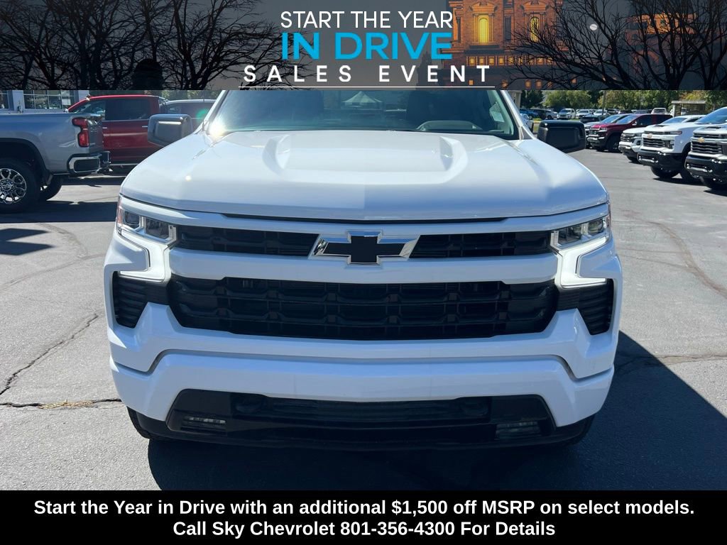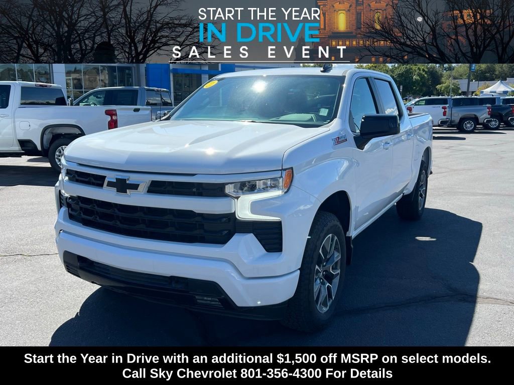 Experience the new Chevrolet Silverado 1500, available now at Sky Chevrolet of Provo! With bold design, advanced technology, and dependable performance, Chevrolet makes every mile more exciting. From Utah Valleyâs city streets to mountain canyon drives, the Silverado 1500 is built to handle it all with confidence. Call 801-356-4300 today to schedule your test drive and see what makes it stand out! Summit White 2025 Chevrolet Silverado 1500 RST 4WD 10-Speed Automatic EcoTec3 5.3L V8 10-Speed Automatic, 4WD, Black Cloth. Price includes: $1500 - GM Bonus Cash $3250 - Chevrolet Consumer Cash Program $1,000 National Select Inventory Bonus Cash