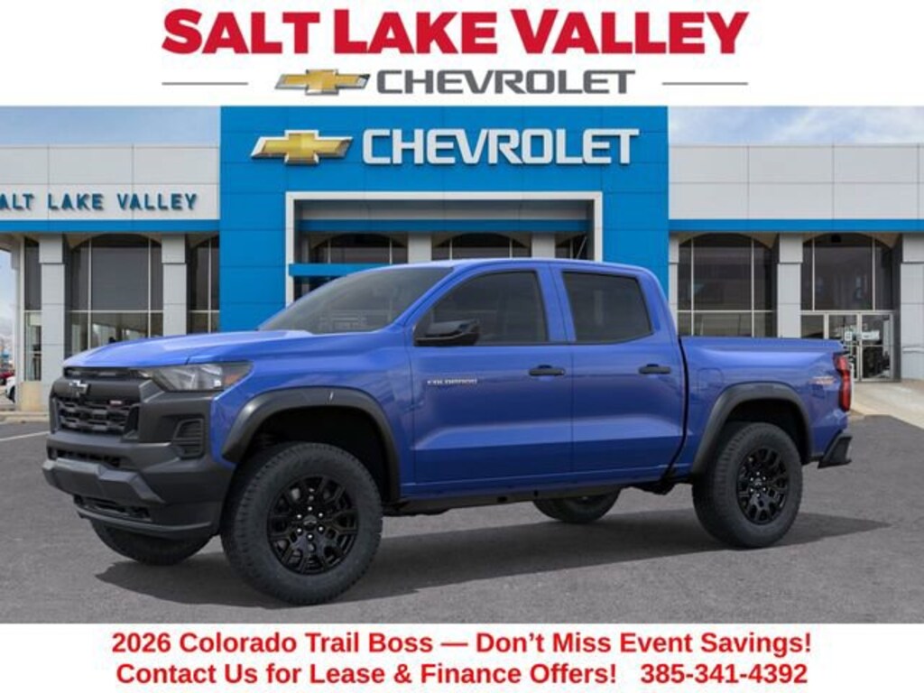 Recent Arrival! Discover the new Chevrolet Colorado at Salt Lake Valley Chevrolet in Salt Lake City! With bold design, modern technology, and reliable performance, Chevrolet makes every drive exciting. Whether itâs city streets or canyon roads, the Colorado is ready for anything. Call us today at 801-969-8221 to schedule a time to see it! --- 2026 Chevrolet Colorado Reef Blue Metallic 2.7L I4 Turbocharged DOHC 16V LEV3-ULEV50 310hp --- Final price excludes tax, tag, title, documentation fees, dealer-installed options, and any market-based pricing adjustments. Financing through GM Financial is required for all discounts to apply. Special finance offers may not be combined with certain factory incentives. While we strive for accuracy, errors may occur please verify all information with a sales representative. For the most accurate pricing, call (801) 969-8221 or visit us in person. Prices and payments are subject to change based on manufacturer incentives. - Price includes - $500 - Chevrolet Consumer Cash Program - Price includes $1,000 Down Payment Assistance. Must Finance with GM Financial - Price includes $1,500 trade in allowance program for customers that own a 2018 or newer passenger car or truck with less than 80,000 miles and trade in their vehicle towards the purchase of a new 2024-2025 Chevrolet. Some restrictions may apply. Contact dealer for details