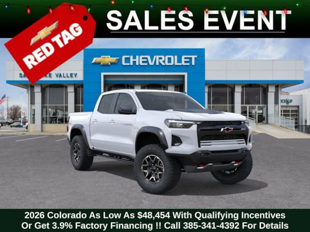 Discover the new Chevrolet Colorado at Salt Lake Valley Chevrolet in Salt Lake City! With bold design, modern technology, and reliable performance, Chevrolet makes every drive exciting. Whether itâs city streets or canyon roads, the Colorado is ready for anything. Call us today at 801-969-8221 to schedule a time to see it! --- 2026 Chevrolet Colorado Summit White 2.7L I4 Turbocharged DOHC 16V LEV3-ULEV50 310hp --- Final price excludes tax, tag, title, documentation fees, dealer-installed options, and any market-based pricing adjustments. Financing through GM Financial is required for all discounts to apply. Special finance offers may not be combined with certain factory incentives. While we strive for accuracy, errors may occur please verify all information with a sales representative. For the most accurate pricing, call (801) 969-8221 or visit us in person. Prices and payments are subject to change based on manufacturer incentives. - Price includes - $500 - Chevrolet Consumer Cash Program - Price includes $1,000 Down Payment Assistance. Must Finance with GM Financial - Price includes $1,500 trade in allowance program for customers that own a 2018 or newer passenger car or truck with less than 80,000 miles and trade in their vehicle towards the purchase of a new 2024-2025 Chevrolet. Some restrictions may apply. Contact dealer for details