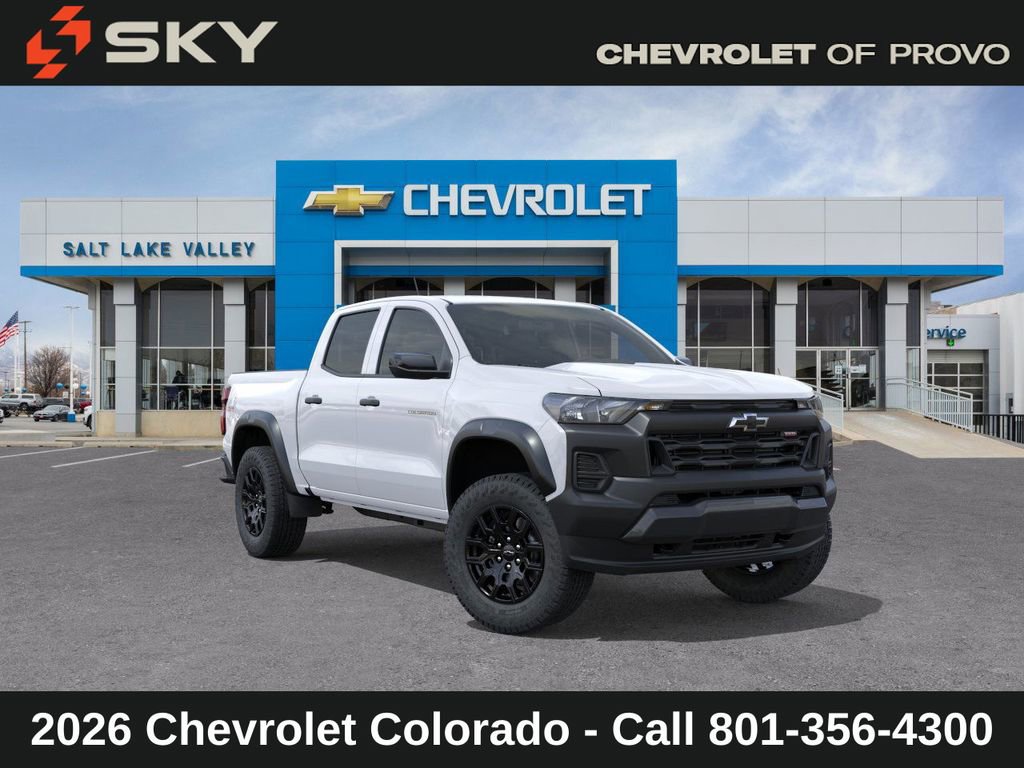 Experience the new Chevrolet Colorado, available now at Sky Chevrolet of Provo! With bold design, advanced technology, and dependable performance, Chevrolet makes every mile more exciting. From Utah Valleyâs city streets to mountain canyon drives, the Colorado is built to handle it all with confidence. Call 801-356-4300 today to schedule your test drive and see what makes it stand out! Summit White 2026 Chevrolet Colorado Trail Boss 4WD 8-Speed Automatic 2.7L I4 Turbocharged DOHC 16V LEV3-ULEV50 310hp 4WD.Recent Arrival! Price includes: $500 - Chevrolet Consumer Cash Program $1,000 Down Payment Assistance. Must Finance with GM Financial. $1,500 trade in allowance program for customers that own a 2018 or newer passenger car or truck with less than 80,000 miles and trade in their vehicle towards the purchase of a new 2025-2026 New Chevrolet. Some restrictions may apply. Contact dealer for details.
