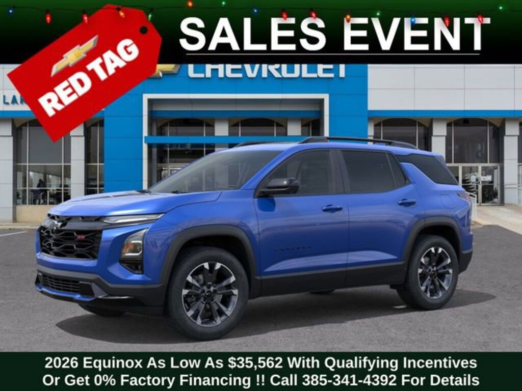 Discover the new Chevrolet Equinox at Salt Lake Valley Chevrolet in Salt Lake City! With bold design, modern technology, and reliable performance, Chevrolet makes every drive exciting. Whether itâs city streets or canyon roads, the Equinox is ready for anything. Call us today at 801-969-8221 to schedule a time to see it! --- 2026 Chevrolet Equinox Reef Blue Metallic 1.5L DOHC --- Final price excludes tax, tag, title, documentation fees, dealer-installed options, and any market-based pricing adjustments. Financing through GM Financial is required for all discounts to apply. Special finance offers may not be combined with certain factory incentives. While we strive for accuracy, errors may occur please verify all information with a sales representative. For the most accurate pricing, call (801) 969-8221 or visit us in person. Prices and payments are subject to change based on manufacturer incentives. - Price includes $1,000 Down Payment Assistance. Must Finance with GM Financial - Price includes $1,500 trade in allowance program for customers that own a 2018 or newer passenger car or truck with less than 80,000 miles and trade in their vehicle towards the purchase of a new 2024-2025 Chevrolet. Some restrictions may apply. Contact dealer for details