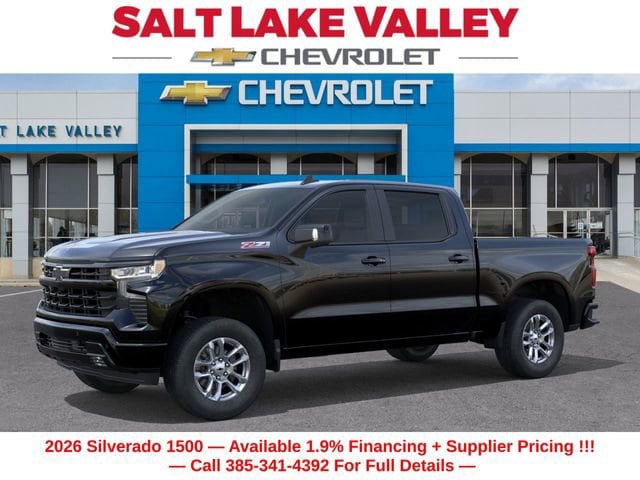 Recent Arrival! Discover the new Chevrolet Silverado 1500 at Salt Lake Valley Chevrolet in Salt Lake City! With bold design, modern technology, and reliable performance, Chevrolet makes every drive exciting. Whether itâs city streets or canyon roads, the Silverado 1500 is ready for anything. Call us today at 801-969-8221 to schedule a time to see it! --- 2026 Chevrolet Silverado 1500 Black EcoTec3 5.3L V8 --- Final price excludes tax, tag, title, documentation fees, dealer-installed options, and any market-based pricing adjustments. Financing through GM Financial is required for all discounts to apply. Special finance offers may not be combined with certain factory incentives. While we strive for accuracy, errors may occur please verify all information with a sales representative. For the most accurate pricing, call (801) 969-8221 or visit us in person. Prices and payments are subject to change based on manufacturer incentives. - Price includes - $1500 - Chevrolet Bonus Cash $3250 - Chevrolet Consumer Cash Program $1,160 - - Price includes $1,500 Trade-In Allowance for customers trading a 2019 or newer passenger car or truck with under 80,000 miles toward a new 2025 2026 Chevrolet. Branded or salvage title vehicles do not qualify. Some restrictions apply. See dealer for details.