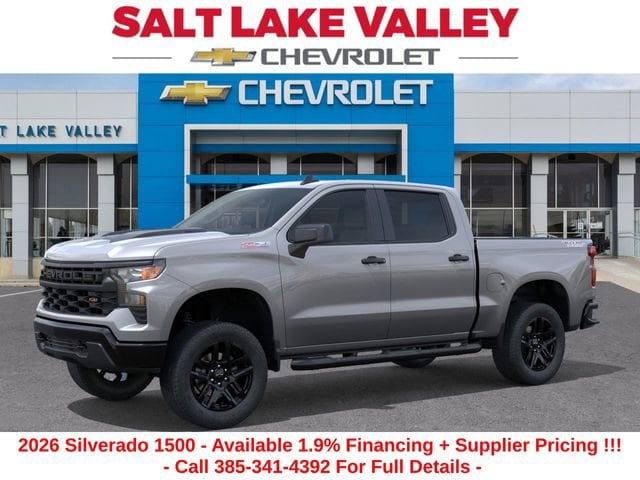 Discover the new Chevrolet Silverado 1500 at Salt Lake Valley Chevrolet in Salt Lake City! With bold design, modern technology, and reliable performance, Chevrolet makes every drive exciting. Whether itâs city streets or canyon roads, the Silverado 1500 is ready for anything. Call us today at 801-969-8221 to schedule a time to see it! --- 2026 Chevrolet Silverado 1500 Sterling Gray Metallic 2.7L I4 Turbocharged DOHC 16V LEV3-SULEV30 310hp --- Final price excludes tax, tag, title, documentation fees, dealer-installed options, and any market-based pricing adjustments. Financing through GM Financial is required for all discounts to apply. Special finance offers may not be combined with certain factory incentives. While we strive for accuracy, errors may occur please verify all information with a sales representative. For the most accurate pricing, call (801) 969-8221 or visit us in person. Prices and payments are subject to change based on manufacturer incentives. - Price includes - $1000 - Chevrolet Select Market Bonus Cash $2000 - Chevrolet Consumer Cash Program