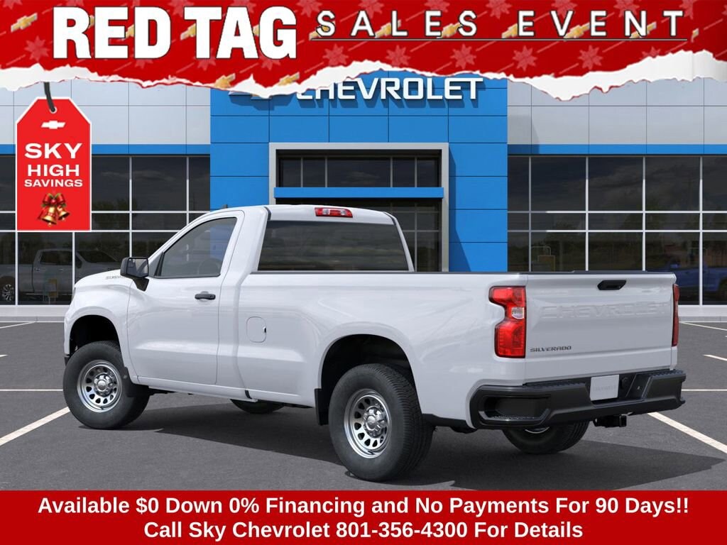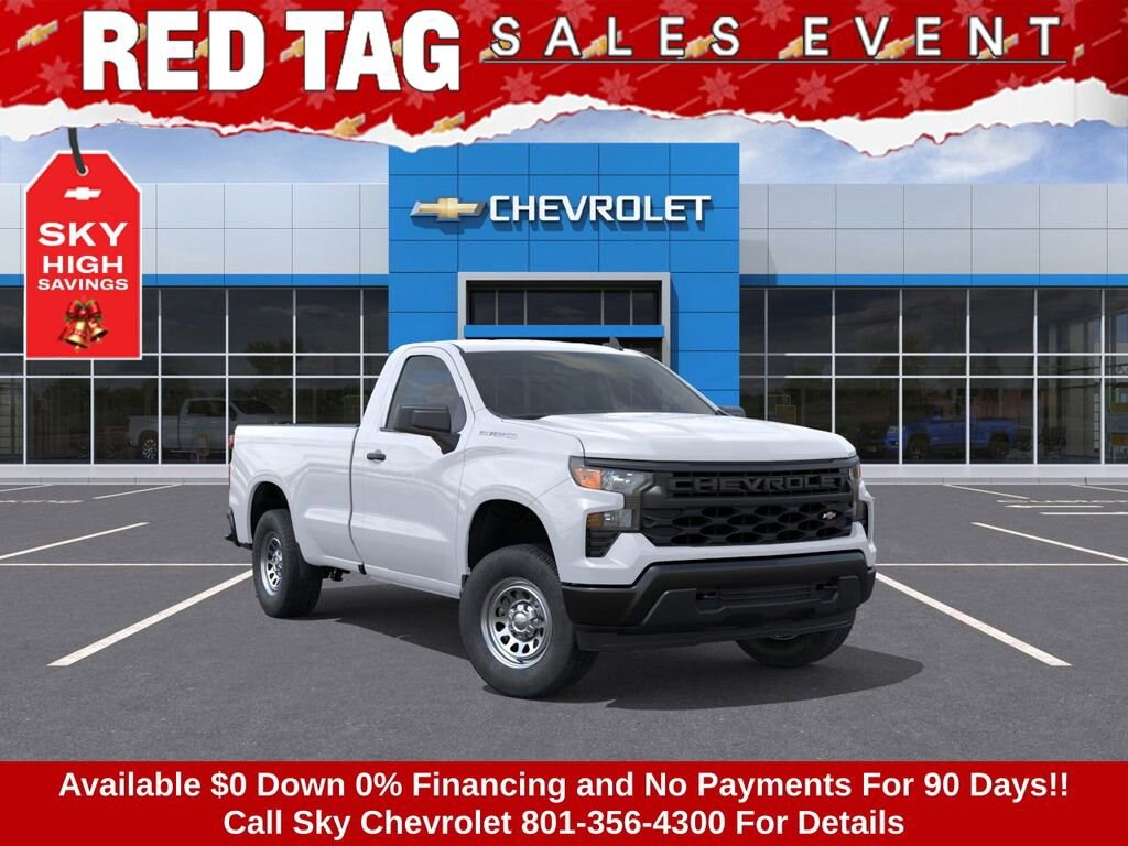 Experience the new Chevrolet Silverado 1500, available now at Sky Chevrolet of Provo! With bold design, advanced technology, and dependable performance, Chevrolet makes every mile more exciting. From Utah Valleyâs city streets to mountain canyon drives, the Silverado 1500 is built to handle it all with confidence. Call 801-356-4300 today to schedule your test drive and see what makes it stand out! Summit White 2026 Chevrolet Silverado 1500 WT RWD 10-Speed Automatic EcoTec3 5.3L V8 10-Speed Automatic, Black Cloth. Price includes: $1500 - GM Bonus Cash $3250 - Chevrolet Consumer Cash Program $1,000 Down Payment Assistance. Must Finance with GM Financial. $1,500 trade in allowance program for customers that own a 2018 or newer passenger car or truck with less than 80,000 miles and trade in their vehicle towards the purchase of a new 2025-2026 New Chevrolet. Some restrictions may apply. Contact dealer for details.