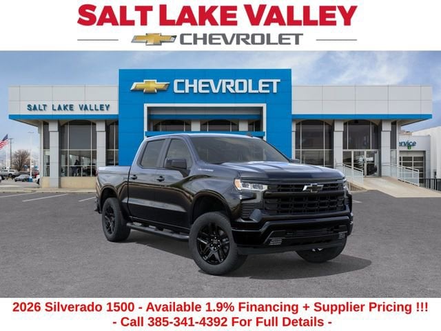 Recent Arrival! Discover the new Chevrolet Silverado 1500 at Salt Lake Valley Chevrolet in Salt Lake City! With bold design, modern technology, and reliable performance, Chevrolet makes every drive exciting. Whether itâs city streets or canyon roads, the Silverado 1500 is ready for anything. Call us today at 801-969-8221 to schedule a time to see it! --- 2026 Chevrolet Silverado 1500 Black 2.7L I4 Turbocharged DOHC 16V LEV3-SULEV30 310hp --- Final price excludes tax, tag, title, documentation fees, dealer-installed options, and any market-based pricing adjustments. Financing through GM Financial is required for all discounts to apply. Special finance offers may not be combined with certain factory incentives. While we strive for accuracy, errors may occur please verify all information with a sales representative. For the most accurate pricing, call (801) 969-8221 or visit us in person. Prices and payments are subject to change based on manufacturer incentives. - Price includes - $1000 - Chevrolet Select Market Bonus Cash $2000 - Chevrolet Consumer Cash Program
