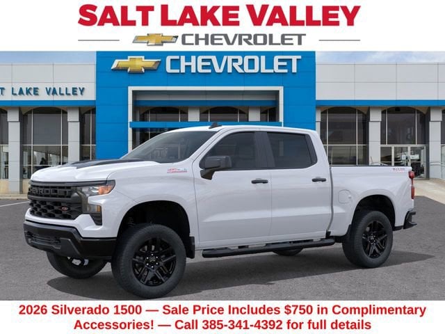 Discover the new Chevrolet Silverado 1500 at Salt Lake Valley Chevrolet in Salt Lake City! With bold design, modern technology, and reliable performance, Chevrolet makes every drive exciting. Whether itâs city streets or canyon roads, the Silverado 1500 is ready for anything. Call us today at 801-969-8221 to schedule a time to see it! --- 2026 Chevrolet Silverado 1500 Summit White 2.7L I4 Turbocharged DOHC 16V LEV3-SULEV30 310hp --- Final price excludes tax, tag, title, documentation fees, dealer-installed options, and any market-based pricing adjustments. Financing through GM Financial is required for all discounts to apply. Special finance offers may not be combined with certain factory incentives. While we strive for accuracy, errors may occur please verify all information with a sales representative. For the most accurate pricing, call (801) 969-8221 or visit us in person. Prices and payments are subject to change based on manufacturer incentives. - Price includes - $1000 - Chevrolet Bonus Cash $1000 - Chevrolet Select Market Bonus Cash $1000 - Chevrolet Trade Assistance Bonus Cash Program $3000 - Chevrolet Consumer Cash Program - Price includes $1,500 trade in allowance program for customers that own a 2018 or newer passenger car or truck with less than 80,000 miles and trade in their vehicle towards the purchase of a new 2024-2025 Chevrolet. Some restrictions may apply. Contact dealer for details