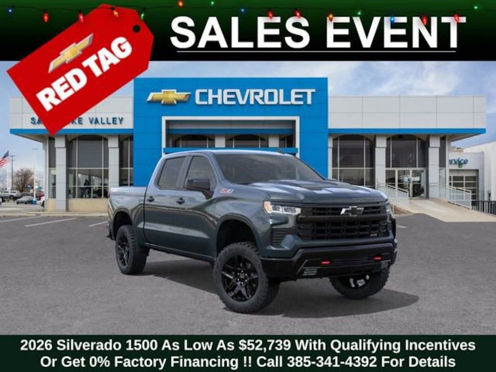 Discover the new Chevrolet Silverado 1500 at Salt Lake Valley Chevrolet in Salt Lake City! With bold design, modern technology, and reliable performance, Chevrolet makes every drive exciting. Whether itâs city streets or canyon roads, the Silverado 1500 is ready for anything. Call us today at 801-969-8221 to schedule a time to see it! --- 2026 Chevrolet Silverado 1500 Cypress Gray 3.0L I6 --- Final price excludes tax, tag, title, documentation fees, dealer-installed options, and any market-based pricing adjustments. Financing through GM Financial is required for all discounts to apply. Special finance offers may not be combined with certain factory incentives. While we strive for accuracy, errors may occur please verify all information with a sales representative. For the most accurate pricing, call (801) 969-8221 or visit us in person. Prices and payments are subject to change based on manufacturer incentives. - Price includes - $1000 - Chevrolet Trade Assistance Bonus Cash Program $1750 - GM Bonus Cash $2500 - Chevrolet Consumer Cash Program - Price includes $1,000 Down Payment Assistance. Must Finance with GM Financial - Price includes $1,500 trade in allowance program for customers that own a 2018 or newer passenger car or truck with less than 80,000 miles and trade in their vehicle towards the purchase of a new 2024-2025 Chevrolet. Some restrictions may apply. Contact dealer for details