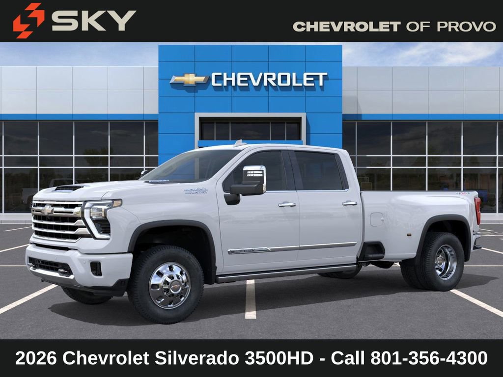 New Price! Experience the new Chevrolet Silverado 3500HD, available now at Sky Chevrolet of Provo! With bold design, advanced technology, and dependable performance, Chevrolet makes every mile more exciting. From Utah Valleyâs city streets to mountain canyon drives, the Silverado 3500HD is built to handle it all with confidence. Call 801-356-4300 today to schedule your test drive and see what makes it stand out! Polar White Tricoat 2026 Chevrolet Silverado 3500HD High Country 4WD 10-Speed Automatic Duramax 6.6L V8 Turbodiesel 10-Speed Automatic, 4WD, Jet Black Leather.Recent Arrival! Price includes: $1500 - Chevrolet Consumer Cash Program $1,500 trade in allowance program for customers that own a 2018 or newer passenger car or truck with less than 80,000 miles and trade in their vehicle towards the purchase of a new 2025-2026 New Chevrolet. Some restrictions may apply. Contact dealer for details.
