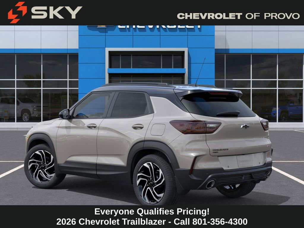Experience the new Chevrolet TrailBlazer, available now at Sky Chevrolet of Provo! With bold design, advanced technology, and dependable performance, Chevrolet makes every mile more exciting. From Utah Valleyâs city streets to mountain canyon drives, the TrailBlazer is built to handle it all with confidence. Call 801-356-4300 today to schedule your test drive and see what makes it stand out! White Sands 2026 Chevrolet TrailBlazer RS AWD 9-Speed Automatic 1.3L I3 Turbocharged DOHC 12V LEV3-SULEV30 155hp