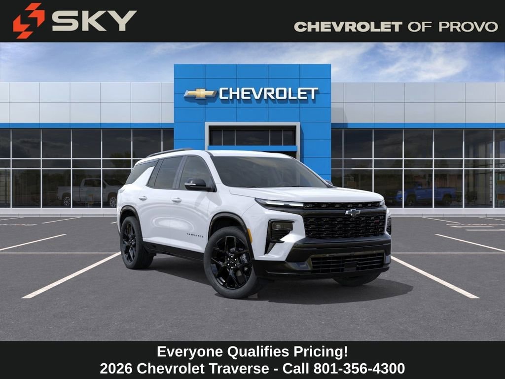 New Price! Experience the new Chevrolet Traverse, available now at Sky Chevrolet of Provo! With bold design, advanced technology, and dependable performance, Chevrolet makes every mile more exciting. From Utah Valleyâs city streets to mountain canyon drives, the Traverse is built to handle it all with confidence. Call 801-356-4300 today to schedule your test drive and see what makes it stand out! Polar White Tricoat 2026 Chevrolet Traverse RS AWD 8-Speed Automatic 2.5L DOHC AWD.