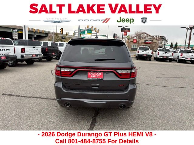 Feel the thrill in the new Dodge Durango at Salt Lake Valley CDJR! With heart-pounding performance, bold design, and legendary muscle, Dodge builds excitement into every mile. Whether youâre cruising downtown or hitting the open highway, this Durango is made to move you. Call 801-484-8755 today to schedule your test drive and see it in person! 2026 Dodge Durango GT Plus HEMI V8 Vapor Gray HEMI 5.7L V8 Multi Displacement VVT