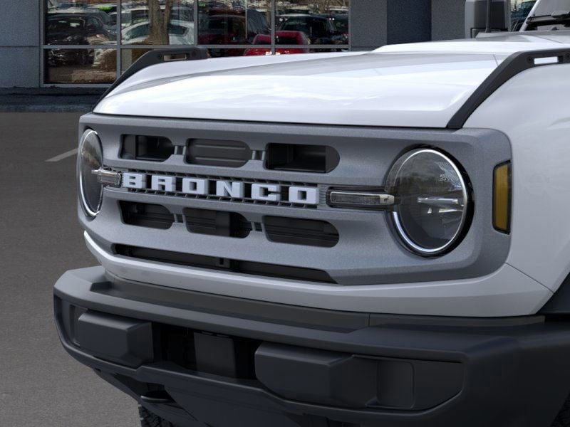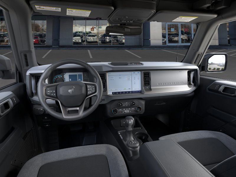 This 2025 Oxford White Ford Bronco Big Bend 4WD is well equipped and includes these features and benefits: 4-Wheel Disc Brakes, 4.46 Axle Ratio, 7 Speakers, ABS brakes, Air Conditioning, Alloy wheels, AM/FM radio: SiriusXM with 360L, AM/FM Stereo, Auto High-beam Headlights, Brake assist, Cloth Bucket Seats, Compass, Delay-off headlights, Driver door bin, Driver vanity mirror, Dual front impact airbags, Dual front side impact airbags, Electronic Stability Control, Emergency communication system: 911 Assist, Exterior Parking Camera Rear, Front anti-roll bar, Front Bucket Seats, Front Center Armrest, Front reading lights, Front wheel independent suspension, Fully automatic headlights, Heated door mirrors, Illuminated entry, Integrated roll-over protection, Leather Shift Knob, Low tire pressure warning, Occupant sensing airbag, Outside temperature display, Overhead airbag, Overhead console, Panic alarm, Passenger door bin, Passenger vanity mirror, Power door mirrors, Power steering, Power windows, Radio data system, Remote keyless entry, Security system, SiriusXM w/360L, Speed control, Split folding rear seat, Steering wheel mounted audio controls, SYNC 4, Tachometer, Telescoping steering wheel, Tilt steering wheel, Traction control, Trip computer, Variably intermittent wipers, and Wheels: 17" Carbonized Gray-Painted Aluminum.