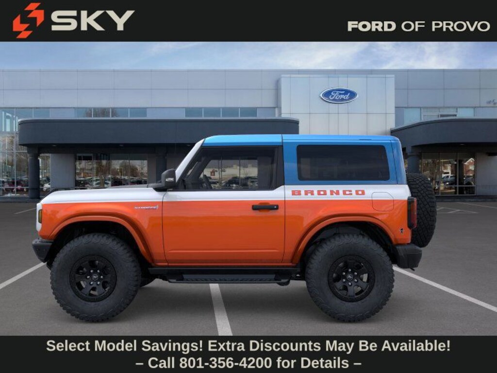 This 2025 Oxford White Ford Bronco Stroppe Edition 4WD is well equipped and includes these features and benefits: Equipment Group 564A Lux Package, 12 Speakers, 4-Wheel Disc Brakes, ABS brakes, Air Conditioning, Alloy wheels, AM/FM radio: SiriusXM with 360L, Auto High-beam Headlights, Auto-dimming Rear-View mirror, Automatic temperature control, Brake assist, Compass, Connected Navigation, Convertible HardTop, Convertible roof lining, Delay-off headlights, Driver door bin, Driver vanity mirror, Dual front impact airbags, Dual front side impact airbags, Electronic Stability Control, Emergency communication system: 911 Assist, Exterior Parking Camera Rear, Front anti-roll bar, Front Bucket Seats, Front Center Armrest, Front dual zone A/C, Front License Plate Bracket, Front reading lights, Front wheel independent suspension, Fully automatic headlights, Garage door transmitter, Glass rear window, Heated door mirrors, Heated front seats, Heated steering wheel, Illuminated entry, Integrated roll-over protection, Leather Shift Knob, Low tire pressure warning, Navigation system: Connected Navigation, Occupant sensing airbag, Outside temperature display, Overhead airbag, Overhead console, Panic alarm, Passenger door bin, Passenger vanity mirror, Power door mirrors, Power steering, Power windows, Radio data system, Radio: B&O Sound System by Bang & Olufsen, Rear anti-roll bar, Rear window defroster, Rear window wiper, Remote keyless entry, Security system, SiriusXM w/360L, Speed control, Split folding rear seat, Steering wheel mounted audio controls, SYNC 4, Tachometer, Telescoping steering wheel, Tilt steering wheel, Traction control, Trip computer, Turn signal indicator mirrors, Unique Vinyl Bucket Seats, Variably intermittent wipers, Voltmeter, and Wheels: 17" Unique Matte Black-Painted Alloy.