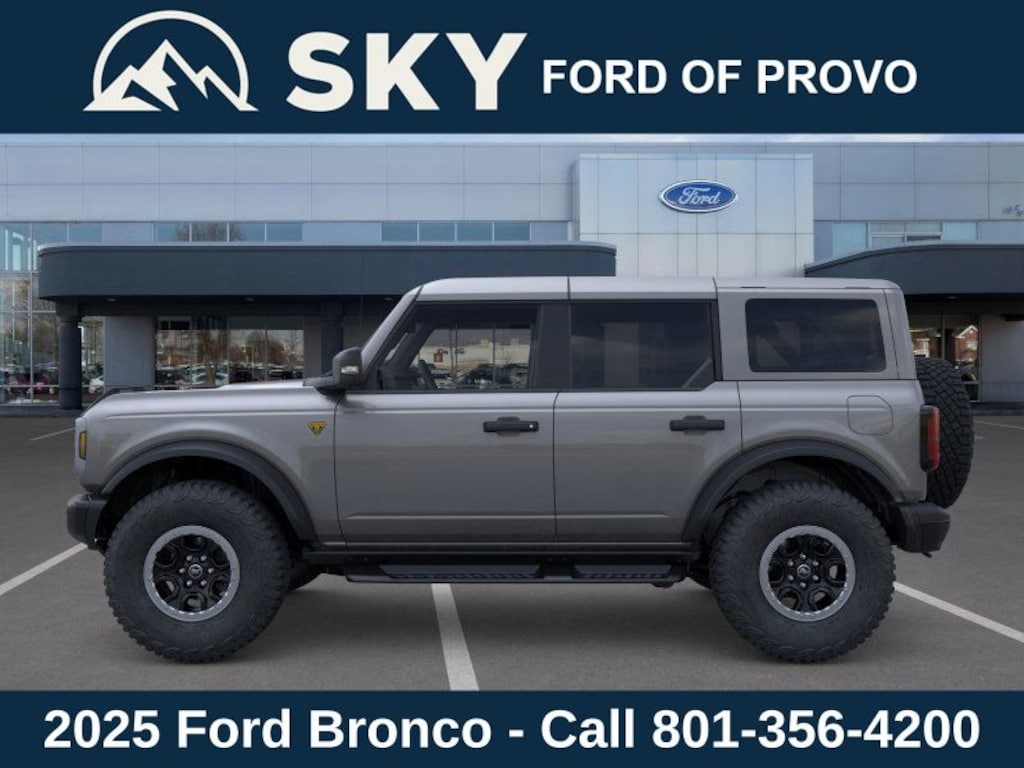 This 2025 Carbonized Gray Metallic Ford Bronco Badlands 4WD is well equipped and includes these features and benefits: 4-Wheel Disc Brakes, 4.7 Axle Ratio, 7 Speakers, ABS brakes, Air Conditioning, Alloy wheels, AM/FM radio: SiriusXM with 360L, AM/FM Stereo, Auto High-beam Headlights, Auto-dimming Rear-View mirror, Brake assist, Compass, Delay-off headlights, Driver door bin, Driver vanity mirror, Dual front impact airbags, Dual front side impact airbags, Electronic Stability Control, Emergency communication system: 911 Assist, Exterior Parking Camera Rear, Front anti-roll bar, Front Bucket Seats, Front Center Armrest, Front fog lights, Front reading lights, Front wheel independent suspension, Fully automatic headlights, Heated door mirrors, Heated front seats, Heated steering wheel, Illuminated entry, Integrated roll-over protection, Leather Shift Knob, Low tire pressure warning, Marine Grade Vinyl Heated Bucket Seats, Occupant sensing airbag, Outside temperature display, Overhead airbag, Overhead console, Panic alarm, Passenger door bin, Passenger vanity mirror, Power door mirrors, Power steering, Power windows, Radio data system, Remote keyless entry, Security system, SiriusXM w/360L, Speed control, Split folding rear seat, Steering wheel mounted audio controls, SYNC 4, Tachometer, Telescoping steering wheel, Tilt steering wheel, Traction control, Trip computer, Variably intermittent wipers, Voltmeter, and Wheels: 17" Carbonized Gray-Painted Aluminum.