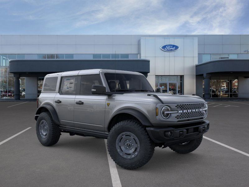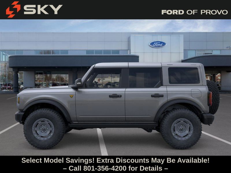 This 2025 Carbonized Gray Metallic Ford Bronco Badlands 4WD is well equipped and includes these features and benefits: Equipment Group 334A Lux Package (2-Door Intelligent Access w/Lock/Unlock, 360-Degree Camera, Adaptive Cruise Control, Ambient Footwell Lighting, Connected Navigation, Dr & Pass Illuminated Sliding Visor Vanity Mirrors, Dual Smart Charging USB Ports, Dual-Zone Electronic Automatic Temperature Control, Evasive Steering Assist, Front Parking Sensors, Front Row Heated Seats, Information on Demand Panel, Power Outlet - Back Side of Center Floor Console, Radio: B&O Sound System by Bang & Olufsen, Rear Parking Sensors, Sideview Mirrors, and Universal Garage Door Opener), Sasquatch Package (High Clearance Fender Flares, High Clearance Suspension, Position-Sensitive Bilstein Shock Absorbers, and Wheels: 17" Carbonized Gray Painted Aluminum), 4-Wheel Disc Brakes, 7 Speakers, ABS brakes, Air Conditioning, Alloy wheels, AM/FM radio: SiriusXM with 360L, AM/FM Stereo, Auto High-Beam Headlamps, Auto High-beam Headlights, Auto-dimming Rear-View mirror, BLIS Blind Spot Information System, Body Color-Painted Hard Top, Brake assist, Compass, Delay-off headlights, Driver door bin, Driver vanity mirror, Dual front impact airbags, Dual front side impact airbags, Electronic Stability Control, Emergency communication system: 911 Assist, Exterior Parking Camera Rear, Front anti-roll bar, Front Bucket Seats, Front Center Armrest, Front fog lights, Front License Plate Bracket, Front reading lights, Front wheel independent suspension, Fully automatic headlights, Hard Top Sound Deadening Headliner, Heated door mirrors, Heated front seats, Heated steering wheel, Illuminated entry, Integrated roll-over protection, Internet access capable: FordPass Connect, Lane-Keeping System, Leather Shift Knob, Low tire pressure warning, Marine Grade Vinyl Heated Bucket Seats, Occupant sensing airbag, Outside temperature display, Overhead airbag, Overhead console, Panic alarm, Passenger door bin, Passenger vanity mirror, Power door mirrors, Power steering, Power windows, Pre-Collision Assist w/Automatic Emergency Braking, Radio data system, Rear-View Camera, Rear-Window Defroster & Washer, Remote keyless entry, Security system, SiriusXM w/360L, Speed control, Split folding rear seat, Steering wheel mounted audio controls, SYNC 4, Tachometer, Telescoping steering wheel, Tilt steering wheel, Traction control, Trip computer, Variably intermittent wipers, Voltmeter, and Wheels: 17" Carbonized Gray-Painted Aluminum.