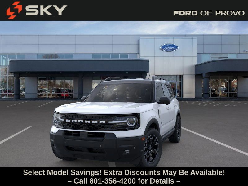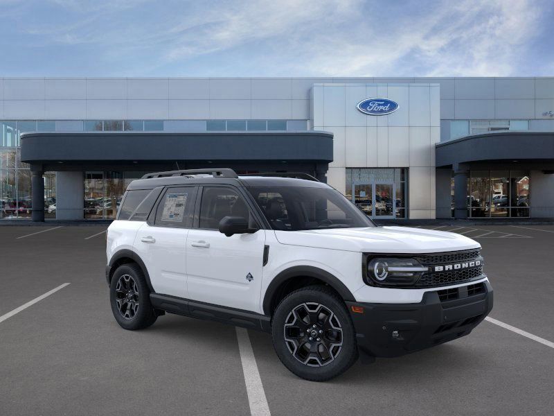 This 2025 Oxford White Ford Bronco Sport Outer Banks 4WD is well equipped and includes these features and benefits: Equipment Group 300A, Outer Banks Tech Package+ (B&O Sound System by Bang & Olufsen, Connected Navigation, and HD Radio), 360-Degree Camera w/Trail & Split View, 4-Wheel Disc Brakes, 6 Speakers, ABS brakes, Air Conditioning, Alloy wheels, AM/FM radio: SiriusXM, AM/FM Stereo, Auto High-beam Headlights, Auto-dimming Rear-View mirror, Automatic temperature control, Brake assist, Compass, Delay-off headlights, Driver door bin, Driver vanity mirror, Dual front impact airbags, Dual front side impact airbags, Electronic Stability Control, Emergency communication system: SYNC 4 911 Assist, Four wheel independent suspension, Front anti-roll bar, Front Bucket Seats, Front Center Armrest, Front Driver/Passenger Seat Back Map Pockets, Front dual zone A/C, Front fog lights, Front License Plate Bracket, Front Parking Sensors, Front reading lights, Fully automatic headlights, Garage door transmitter, Heated door mirrors, Heated front seats, Heated steering wheel, Illuminated entry, Knee airbag, Low tire pressure warning, Memory seat, Occupant sensing airbag, Outside temperature display, Overhead airbag, Overhead console, Panic alarm, Passenger door bin, Passenger vanity mirror, Power door mirrors, Power driver seat, Power passenger seat, Power steering, Power windows, Premium Trimmed Front Bucket Seats w/Ebony/Roast, Radio data system, Rain sensing wipers, Rear anti-roll bar, Rear Parking Sensors, Rear reading lights, Rear seat center armrest, Rear window defroster, Rear window wiper, Remote keyless entry, Reverse Brake Assist, Security system, SiriusXM, Speed control, Speed-sensing steering, Speed-Sensitive Wipers, Split folding rear seat, Steering wheel mounted audio controls, SYNC 4 w/Enhanced Voice Recognition, Tachometer, Telescoping steering wheel, Tilt steering wheel, Traction control, Trip computer, Variably intermittent wipers, and Wheels: 18" Ebony Black-Painted Aluminum.