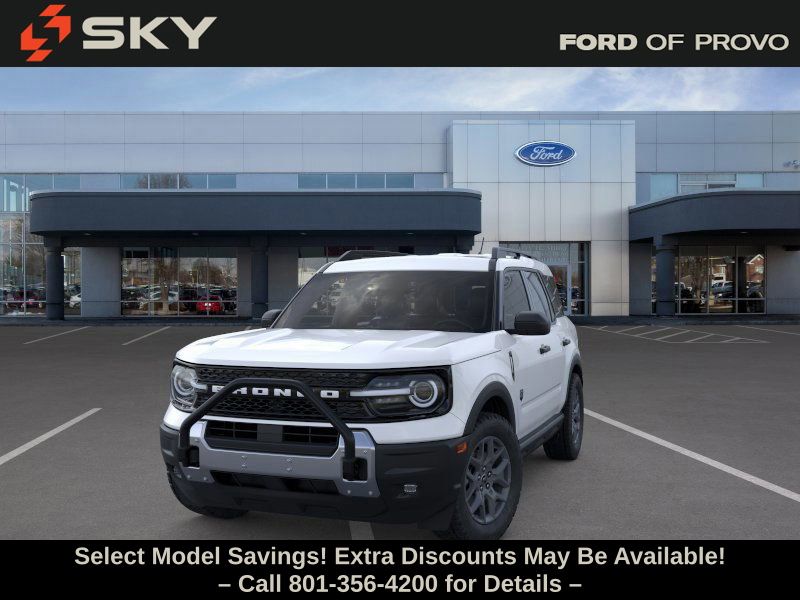 This 2025 Oxford White Ford Bronco Sport Big Bend 4WD is well equipped and includes these features and benefits: Black Diamond Off-Road Package (110V/400W AC Power Outlet, 2nd Row Carpeted Seatback, Auxiliary Switches & Wiring, Brush Guard, Cargo Management System (Shelf/Divider/Table), Cargo Mat, Class II Trailer Tow Pack w/Trailer Sway Control, Fender Tie Downs, Front & Rear Black Bumpers, Interior Grab Handle, Recovery Hooks, and Wheels: 17" Carbonized Gray Painted Aluminum), Convenience Package (Front Driver/Passenger Seat Back Map Pockets, Heated 8-Way Power Driver's Seat, LED Fog Lamps, Premium Wrapped Steering Wheel, and Universal Garage Door Opener (UGDO)), Equipment Group 200A, 4-Wheel Disc Brakes, 6 Speakers, ABS brakes, Air Conditioning, Alloy wheels, AM/FM radio: SiriusXM, AM/FM Stereo, Auto High-beam Headlights, Automatic temperature control, Brake assist, Cloth w/Easy-to-Clean Front Bucket Seats, Compass, Delay-off headlights, Driver door bin, Driver vanity mirror, Dual front impact airbags, Dual front side impact airbags, Electronic Stability Control, Emergency communication system: SYNC 4 911 Assist, Four wheel independent suspension, Front & Rear Floor Liners w/o Carpet Mats, Front anti-roll bar, Front Bucket Seats, Front Center Armrest, Front License Plate Bracket, Front reading lights, Fully automatic headlights, Heated door mirrors, Illuminated entry, Knee airbag, Low tire pressure warning, Occupant sensing airbag, Outside temperature display, Overhead airbag, Overhead console, Panic alarm, Passenger door bin, Passenger vanity mirror, Power door mirrors, Power steering, Power windows, Radio data system, Rear anti-roll bar, Rear Parking Sensors, Rear reading lights, Rear seat center armrest, Rear window defroster, Rear window wiper, Remote keyless entry, Security system, SiriusXM, Speed control, Speed-sensing steering, Speed-Sensitive Wipers, Split folding rear seat, Steering wheel mounted audio controls, SYNC 4 w/Enhanced Voice Recognition, Tachometer, Telescoping steering wheel, Tilt steering wheel, Traction control, Trip computer, Variably intermittent wipers, and Wheels: 17" Carbonized Gray-Painted Aluminum.