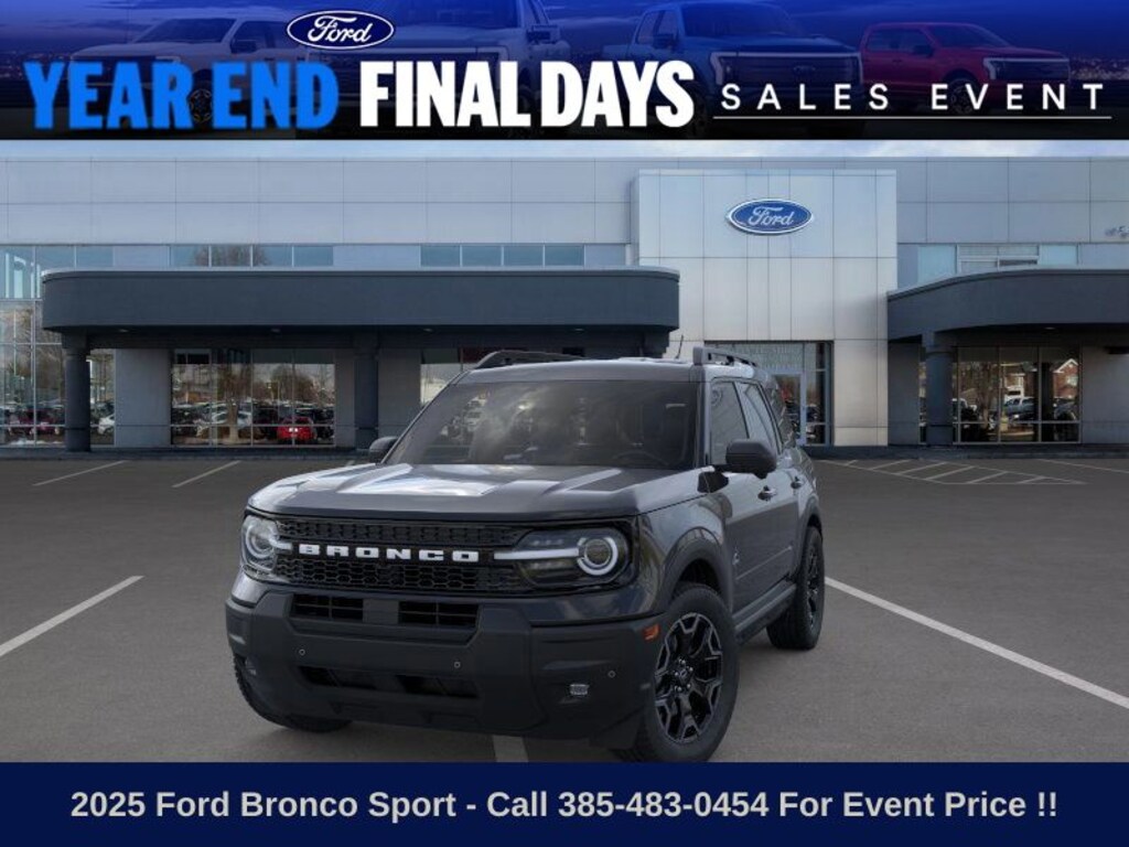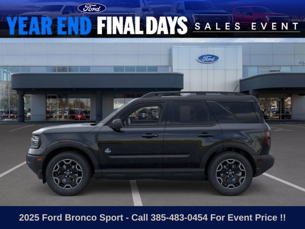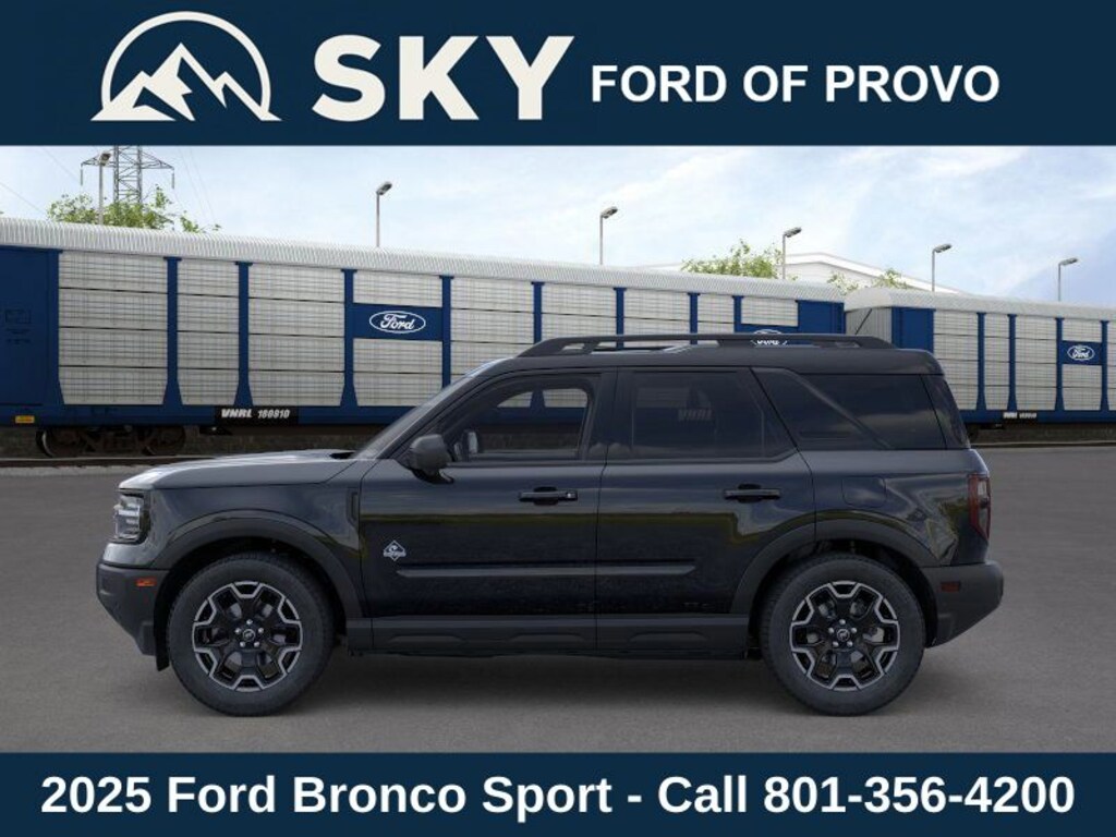 This 2025 Shadow Black Ford Bronco Sport Outer Banks 4WD is well equipped and includes these features and benefits: 4-Wheel Disc Brakes, 6 Speakers, ABS brakes, Air Conditioning, Alloy wheels, AM/FM radio: SiriusXM, AM/FM Stereo, Auto High-beam Headlights, Auto-dimming Rear-View mirror, Automatic temperature control, Brake assist, Compass, Delay-off headlights, Driver door bin, Driver vanity mirror, Dual front impact airbags, Dual front side impact airbags, Electronic Stability Control, Emergency communication system: SYNC 4 911 Assist, Four wheel independent suspension, Front anti-roll bar, Front Bucket Seats, Front Center Armrest, Front Driver/Passenger Seat Back Map Pockets, Front dual zone A/C, Front fog lights, Front reading lights, Fully automatic headlights, Garage door transmitter, Heated door mirrors, Heated front seats, Heated steering wheel, Illuminated entry, Knee airbag, Low tire pressure warning, Memory seat, Occupant sensing airbag, Outside temperature display, Overhead airbag, Overhead console, Panic alarm, Passenger door bin, Passenger vanity mirror, Power door mirrors, Power driver seat, Power passenger seat, Power steering, Power windows, Premium Trimmed Front Bucket Seats w/Ebony/Roast, Radio data system, Rain sensing wipers, Rear anti-roll bar, Rear Parking Sensors, Rear reading lights, Rear seat center armrest, Rear window defroster, Rear window wiper, Remote keyless entry, Security system, SiriusXM, Speed control, Speed-sensing steering, Speed-Sensitive Wipers, Split folding rear seat, Steering wheel mounted audio controls, SYNC 4 w/Enhanced Voice Recognition, Tachometer, Telescoping steering wheel, Tilt steering wheel, Traction control, Trip computer, Variably intermittent wipers, and Wheels: 18" Ebony Black-Painted Aluminum.