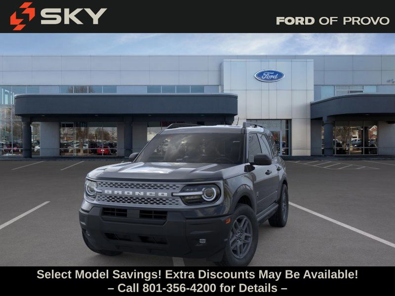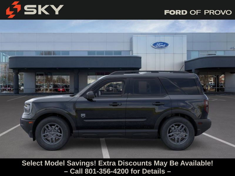 This 2025 Shadow Black Ford Bronco Sport Big Bend 4WD is well equipped and includes these features and benefits: Convenience Package (Front Driver/Passenger Seat Back Map Pockets, Heated 8-Way Power Driver's Seat, LED Fog Lamps, Premium Wrapped Steering Wheel, and Universal Garage Door Opener (UGDO)), Equipment Group 200A, 4-Wheel Disc Brakes, 6 Speakers, ABS brakes, Air Conditioning, Alloy wheels, AM/FM radio: SiriusXM, AM/FM Stereo, Auto High-beam Headlights, Automatic temperature control, Brake assist, Cloth w/Easy-to-Clean Front Bucket Seats, Compass, Delay-off headlights, Driver door bin, Driver vanity mirror, Dual front impact airbags, Dual front side impact airbags, Electronic Stability Control, Emergency communication system: SYNC 4 911 Assist, Four wheel independent suspension, Front anti-roll bar, Front Bucket Seats, Front Center Armrest, Front License Plate Bracket, Front reading lights, Fully automatic headlights, Heated door mirrors, Illuminated entry, Knee airbag, Low tire pressure warning, Occupant sensing airbag, Outside temperature display, Overhead airbag, Overhead console, Panic alarm, Passenger door bin, Passenger vanity mirror, Power door mirrors, Power steering, Power windows, Radio data system, Rear anti-roll bar, Rear Parking Sensors, Rear reading lights, Rear seat center armrest, Rear window defroster, Rear window wiper, Remote keyless entry, Security system, SiriusXM, Speed control, Speed-sensing steering, Speed-Sensitive Wipers, Split folding rear seat, Steering wheel mounted audio controls, SYNC 4 w/Enhanced Voice Recognition, Tachometer, Telescoping steering wheel, Tilt steering wheel, Traction control, Trip computer, Variably intermittent wipers, and Wheels: 17" Carbonized Gray-Painted Aluminum.