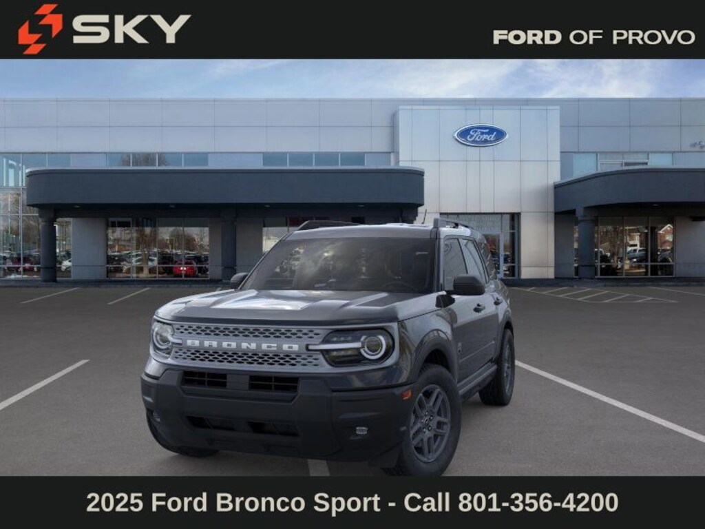 This 2025 Shadow Black Ford Bronco Sport Big Bend 4WD is well equipped and includes these features and benefits: 4-Wheel Disc Brakes, 6 Speakers, ABS brakes, Air Conditioning, Alloy wheels, AM/FM radio: SiriusXM, AM/FM Stereo, Auto High-beam Headlights, Automatic temperature control, Brake assist, Cloth w/Easy-to-Clean Front Bucket Seats, Compass, Delay-off headlights, Driver door bin, Driver vanity mirror, Dual front impact airbags, Dual front side impact airbags, Electronic Stability Control, Emergency communication system: SYNC 4 911 Assist, Four wheel independent suspension, Front anti-roll bar, Front Bucket Seats, Front Center Armrest, Front reading lights, Fully automatic headlights, Heated door mirrors, Illuminated entry, Knee airbag, Low tire pressure warning, Occupant sensing airbag, Outside temperature display, Overhead airbag, Overhead console, Panic alarm, Passenger door bin, Passenger vanity mirror, Power door mirrors, Power steering, Power windows, Radio data system, Rear anti-roll bar, Rear Parking Sensors, Rear reading lights, Rear seat center armrest, Rear window defroster, Rear window wiper, Remote keyless entry, Security system, SiriusXM, Speed control, Speed-sensing steering, Speed-Sensitive Wipers, Split folding rear seat, Steering wheel mounted audio controls, SYNC 4 w/Enhanced Voice Recognition, Tachometer, Telescoping steering wheel, Tilt steering wheel, Traction control, Trip computer, Variably intermittent wipers, and Wheels: 17" Carbonized Gray-Painted Aluminum.