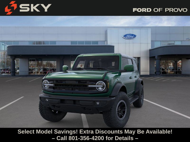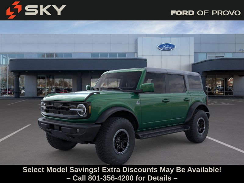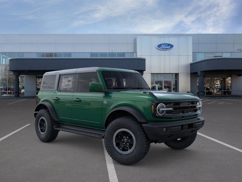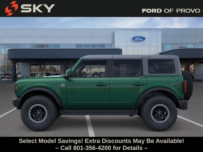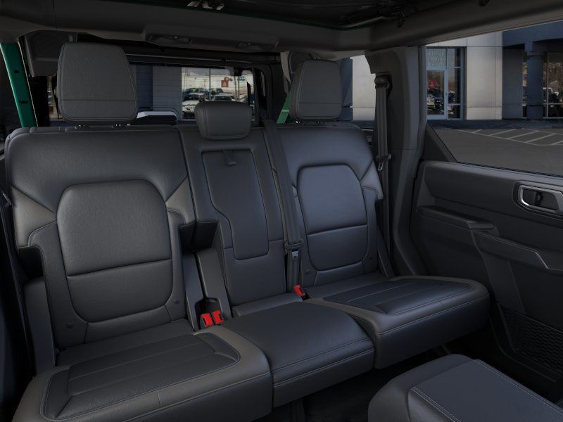 This 2025 Eruption Green Metallic Ford Bronco Outer Banks Advanced 4WD is well equipped and includes these features and benefits: Equipment Group 312A Mid Package, Sasquatch Graphics Package, Sasquatch Package (High Clearance Fender Flares, High Clearance Suspension, Position-Sensitive Bilstein Shock Absorbers, and Wheels: 17" Carbonized Gray Painted Aluminum), 18" Bright Machined Aluminum Wheels, 4-Wheel Disc Brakes, 7 Speakers, ABS brakes, Air Conditioning, Alloy wheels, AM/FM radio: SiriusXM with 360L, AM/FM Stereo, Auto High-beam Headlights, Auto-dimming Rear-View mirror, Automatic temperature control, Brake assist, Carbonized Gray Molded-In-Color Hard Top, Compass, Connected Navigation, Delay-off headlights, Door Storage Bags, Driver door bin, Driver vanity mirror, Dual front impact airbags, Dual front side impact airbags, Electronic Stability Control, Emergency communication system: 911 Assist, Exterior Parking Camera Rear, Front anti-roll bar, Front Bucket Seats, Front Center Armrest, Front dual zone A/C, Front fog lights, Front License Plate Bracket, Front reading lights, Front wheel independent suspension, Fully automatic headlights, Heated door mirrors, Heated front seats, Heated Leather-Trimmed/Vinyl Bucket Seats, Heated steering wheel, Illuminated entry, Integrated roll-over protection, Internet access capable: FordPass Connect, Leather Shift Knob, Low tire pressure warning, Navigation system: Connected Navigation, Occupant sensing airbag, Outside temperature display, Overhead airbag, Overhead console, Panic alarm, Passenger door bin, Passenger vanity mirror, Power door mirrors, Power driver seat, Power passenger seat, Power steering, Power windows, Radio data system, Rear seat center armrest, Rear-Window Defroster & Washer, Remote keyless entry, Security system, SiriusXM w/360L, Speed control, Split folding rear seat, Steering wheel mounted audio controls, SYNC 4, Tachometer, Telescoping steering wheel, Tilt steering wheel, Traction control, Trip computer, Upgraded Carpet Floor Mats, Variably intermittent wipers, Voltmeter, and Wheels: 17" Black High Gloss-Painted Aluminum (64X)