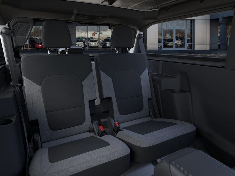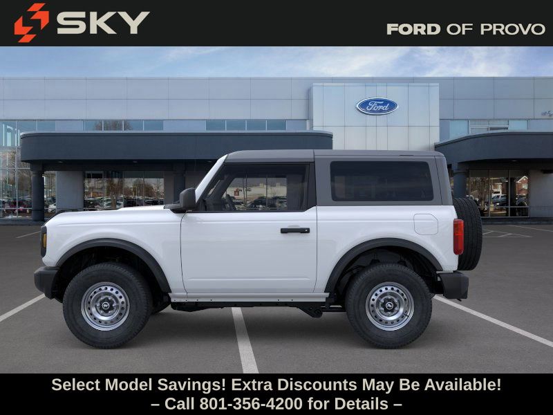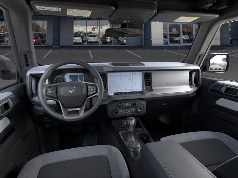 This 2025 Oxford White Ford Bronco 4WD is well equipped and includes these features and benefits: Equipment Group 101A, 4-Wheel Disc Brakes, 4.46 Axle Ratio, 7 Speakers, ABS brakes, Air Conditioning, AM/FM radio: SiriusXM with 360L, AM/FM Stereo, Auto High-beam Headlights, Brake assist, Cloth Bucket Seats, Compass, Convertible HardTop, Convertible roof lining, Delay-off headlights, Driver door bin, Driver vanity mirror, Dual front impact airbags, Dual front side impact airbags, Electronic Stability Control, Emergency communication system: 911 Assist, Exterior Parking Camera Rear, Front & Rear Floor Liners w/o Carpet Floor Mats, Front anti-roll bar, Front Bucket Seats, Front Center Armrest, Front License Plate Bracket, Front reading lights, Front Row Top Panels & Door Storage Bags, Front wheel independent suspension, Fully automatic headlights, Glass rear window, Heated door mirrors, Illuminated entry, Integrated roll-over protection, Internet access capable: FordPass Connect, Low tire pressure warning, Occupant sensing airbag, Outside temperature display, Overhead airbag, Overhead console, Panic alarm, Passenger door bin, Passenger vanity mirror, Power door mirrors, Power steering, Power windows, Radio data system, Rear window defroster, Rear window wiper, Remote keyless entry, Security system, SiriusXM w/360L, Speed control, Split folding rear seat, Steering wheel mounted audio controls, SYNC 4, Tachometer, Telescoping steering wheel, Tilt steering wheel, Traction control, Trip computer, Variably intermittent wipers, and Wheels: 16" Bright Polished Silver-Painted Steel.