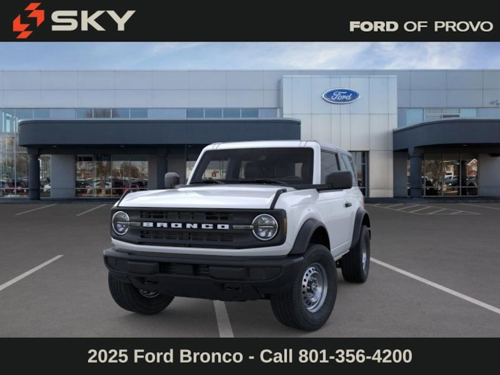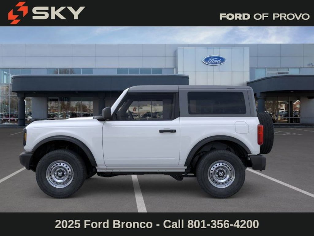 This 2025 Oxford White Ford Bronco 4WD is well equipped and includes these features and benefits: Equipment Group 101A, 4-Wheel Disc Brakes, 4.46 Axle Ratio, 7 Speakers, ABS brakes, Air Conditioning, AM/FM radio: SiriusXM with 360L, AM/FM Stereo, Auto High-beam Headlights, Brake assist, Cloth Bucket Seats, Compass, Convertible HardTop, Convertible roof lining, Delay-off headlights, Driver door bin, Driver vanity mirror, Dual front impact airbags, Dual front side impact airbags, Electronic Stability Control, Emergency communication system: 911 Assist, Exterior Parking Camera Rear, Front & Rear Floor Liners w/o Carpet Floor Mats, Front anti-roll bar, Front Bucket Seats, Front Center Armrest, Front License Plate Bracket, Front reading lights, Front Row Top Panels & Door Storage Bags, Front wheel independent suspension, Fully automatic headlights, Glass rear window, Heated door mirrors, Illuminated entry, Integrated roll-over protection, Low tire pressure warning, Occupant sensing airbag, Outside temperature display, Overhead airbag, Overhead console, Panic alarm, Passenger door bin, Passenger vanity mirror, Power door mirrors, Power steering, Power windows, Radio data system, Rear window defroster, Rear window wiper, Remote keyless entry, Security system, SiriusXM w/360L, Speed control, Split folding rear seat, Steering wheel mounted audio controls, SYNC 4, Tachometer, Telescoping steering wheel, Tilt steering wheel, Traction control, Trip computer, Variably intermittent wipers, and Wheels: 16" Bright Polished Silver-Painted Steel.