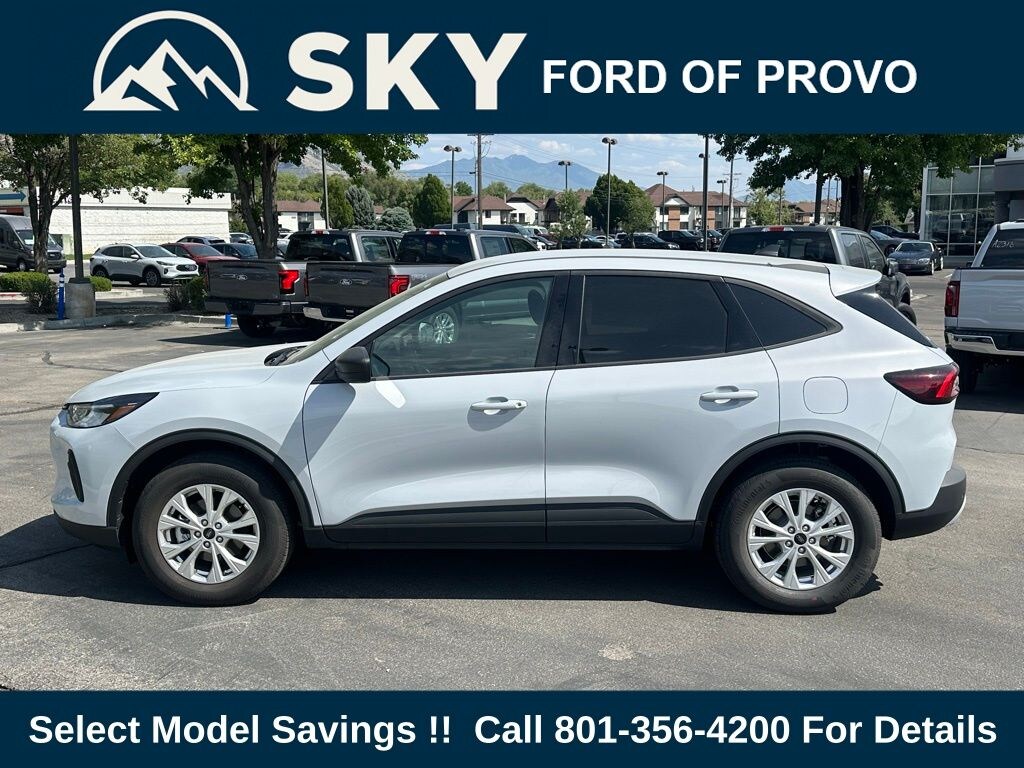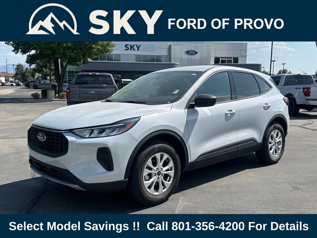This 2025 Space Silver Metallic Ford Escape Active AWD is well equipped and includes these features and benefits: Cold Weather Package (Heated Front Row Seats, Heated Sideview Mirrors, Heated Steering Wheel, and Remote Starter System), Equipment Group 200A, Tech Pack #1 (Adaptive Cruise Control w/Stop-and-Go, Connected Navigation, Ford Co-Pilot360 Assist+, Intersection Assist, Predictive Speed Assist, Rear Parking Sensor, Rear-View Camera, and SYNC 4 w/Enhanced Voice Recognition), AWD, 3.81 Axle Ratio, 4-Wheel Disc Brakes, 6 Speakers, ABS brakes, Air Conditioning, Alloy wheels, AM/FM radio: SiriusXM, AM/FM Stereo, Auto High-beam Headlights, Automatic temperature control, Brake assist, Bumpers: body-color, Compass, Delay-off headlights, Driver door bin, Driver vanity mirror, Dual front impact airbags, Dual front side impact airbags, Electronic Stability Control, Emergency communication system: SYNC 4 911 Assist, FordPass Connect, Four wheel independent suspension, Front anti-roll bar, Front Bucket Seats, Front Center Armrest, Front dual zone A/C, Front License Plate Bracket, Front reading lights, Fully automatic headlights, Illuminated entry, Knee airbag, Low tire pressure warning, Occupant sensing airbag, Outside temperature display, Overhead airbag, Overhead console, Panic alarm, Passenger door bin, Passenger vanity mirror, Power door mirrors, Power Liftgate, Power steering, Power windows, Radio data system, Rear anti-roll bar, Rear reading lights, Rear seat center armrest, Rear window defroster, Rear window wiper, Remote keyless entry, Speed control, Speed-sensing steering, Speed-Sensitive Wipers, Split folding rear seat, Spoiler, Steering wheel mounted audio controls, SYNC 4, Tachometer, Telescoping steering wheel, Tilt steering wheel, Traction control, Trip computer, Unique Cloth Front Bucket Seats, Variably intermittent wipers, and Wheels: 17" Shadow Silver-Painted Aluminum.
