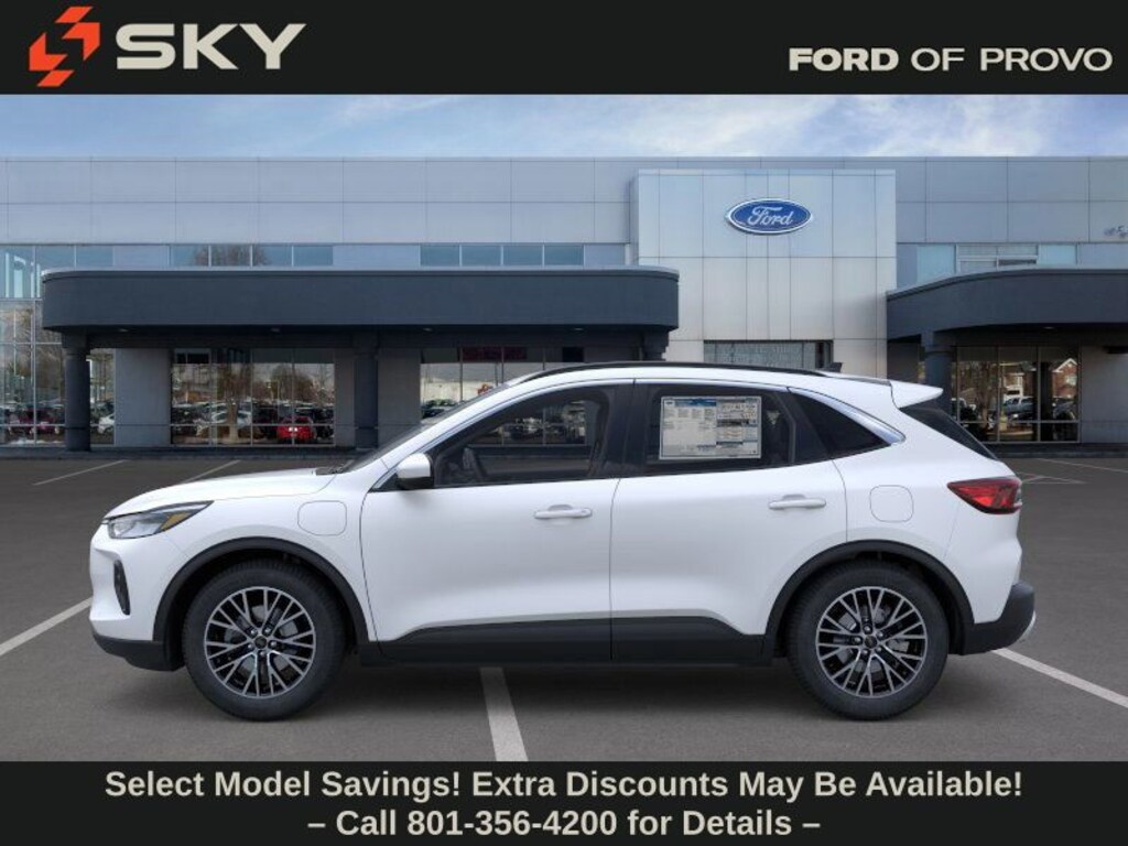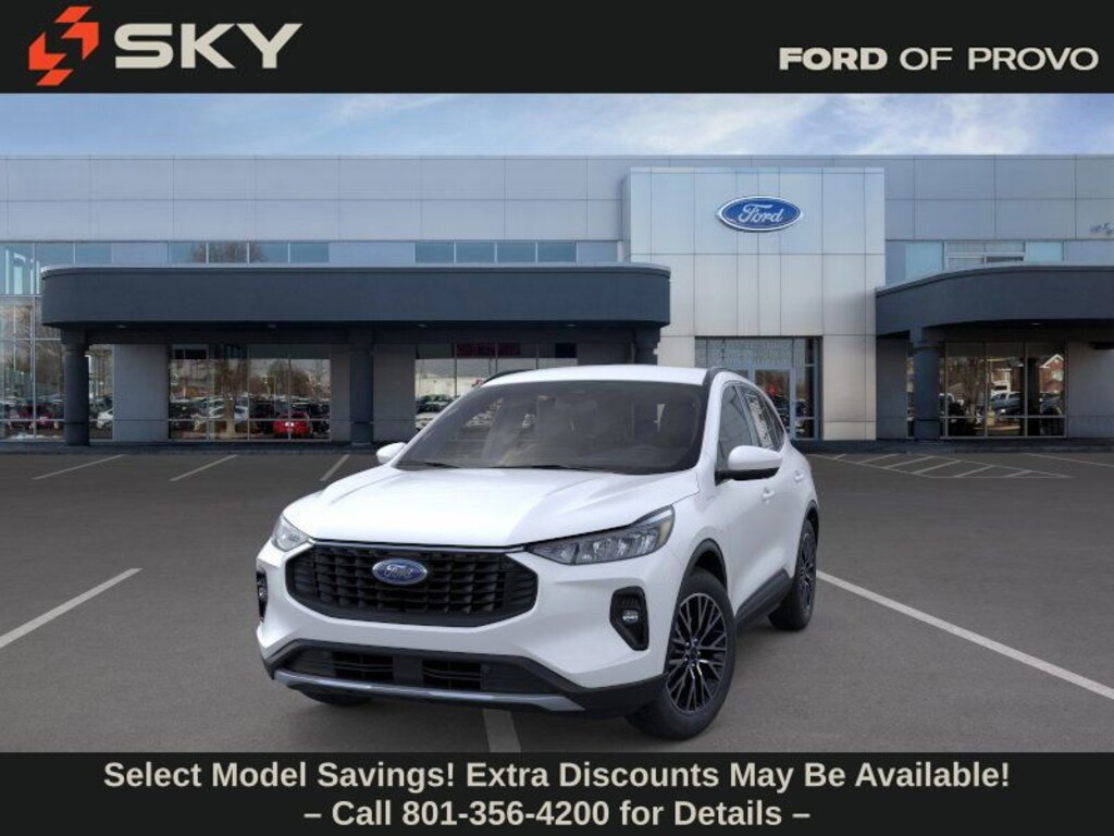 This 2025 Star White Metallic Tri-Coat Ford Escape Plug-In Hybrid Base FWD is well equipped and includes these features and benefits: Class II Trailer Tow Package, Equipment Group 700A, 2.5L iVCT, 2.91 Axle Ratio, 4-Wheel Disc Brakes, 6 Speakers, ABS brakes, Air Conditioning, Alloy wheels, AM/FM radio: SiriusXM, AM/FM Stereo, Auto High-beam Headlights, Automatic temperature control, Brake assist, Bumpers: body-color, Compass, Delay-off headlights, Driver door bin, Driver vanity mirror, Dual front impact airbags, Dual front side impact airbags, Electronic Stability Control, Emergency communication system: SYNC 4 911 Assist, FordPass Connect, Four wheel independent suspension, Front anti-roll bar, Front Bucket Seats, Front Center Armrest, Front dual zone A/C, Front fog lights, Front License Plate Bracket, Front reading lights, Fully automatic headlights, Heated door mirrors, Heated front seats, Heated steering wheel, Heated Vinyl/Cloth Front Sport Contour Bucket Seats, Illuminated entry, Knee airbag, Low tire pressure warning, Navigation system: Connected Navigation, Occupant sensing airbag, Outside temperature display, Overhead airbag, Overhead console, Panic alarm, Passenger door bin, Passenger vanity mirror, Power door mirrors, Power driver seat, Power Liftgate, Power steering, Power windows, Radio data system, Rear anti-roll bar, Rear reading lights, Rear seat center armrest, Rear window defroster, Rear window wiper, Remote keyless entry, Speed control, Speed-sensing steering, Speed-Sensitive Wipers, Split folding rear seat, Spoiler, Steering wheel mounted audio controls, SYNC 4 w/Enhanced Voice Recognition, Telescoping steering wheel, Tilt steering wheel, Traction control, Trip computer, Variably intermittent wipers, and Wheels: 18" Machined-Face Magnetic Aluminum.