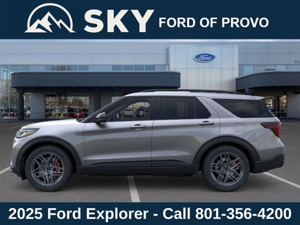 This 2025 Carbonized Gray Metallic Ford Explorer ST 4WD is well equipped and includes these features and benefits: 4WD, 10 Speakers, 3.58 Non-Limited Slip Rear Axle, 3rd row seats: bench, 4-Wheel Disc Brakes, ABS brakes, Air Conditioning, Alloy wheels, AM/FM radio: SiriusXM with 360L, Apple CarPlay/Android Auto, Auto High-beam Headlights, Auto-dimming door mirrors, Auto-dimming Rear-View mirror, Automatic temperature control, Brake assist, Bumpers: body-color, Compass, Delay-off headlights, Driver door bin, Driver vanity mirror, Dual front impact airbags, Dual front side impact airbags, Electronic Stability Control, Emergency communication system: 911 Assist, Exterior Parking Camera Rear, Four wheel independent suspension, Front anti-roll bar, Front Bucket Seats, Front Center Armrest, Front dual zone A/C, Front fog lights, Front reading lights, Fully automatic headlights, Garage door transmitter, Heated door mirrors, Heated front seats, Heated rear seats, Heated steering wheel, Heated/Ventilated Miko Sport Captain's Chairs, Illuminated entry, Knee airbag, Leather steering wheel, Low tire pressure warning, Memory seat, Navigation System, Occupant sensing airbag, Outside temperature display, Overhead airbag, Overhead console, Panic alarm, Passenger door bin, Passenger vanity mirror, Power door mirrors, Power driver seat, Power Liftgate, Power passenger seat, Power steering, Power windows, Radio: B&O Sound System by Bang & Olufsen, Rain sensing wipers, Rear air conditioning, Rear anti-roll bar, Rear reading lights, Rear window defroster, Rear window wiper, Remote keyless entry, Security system, Speed control, Speed-sensing steering, Speed-Sensitive Wipers, Split folding rear seat, Spoiler, Sport steering wheel, Steering wheel mounted audio controls, Tachometer, Telescoping steering wheel, Tilt steering wheel, Traction control, Trip computer, Turn signal indicator mirrors, Variably intermittent wipers, Ventilated front seats, and Wheels: 21" Magnetite-Painted Aluminum.