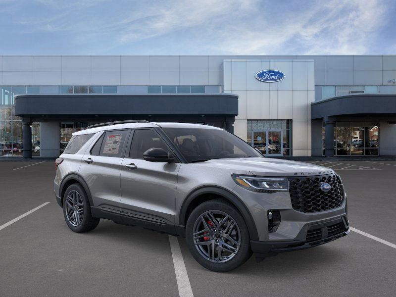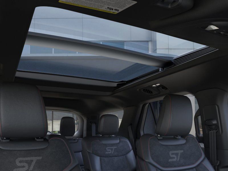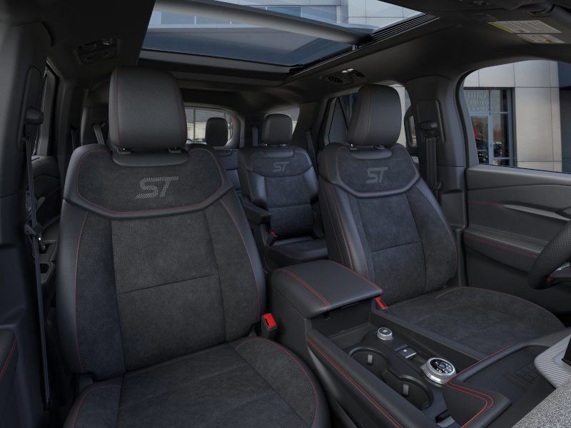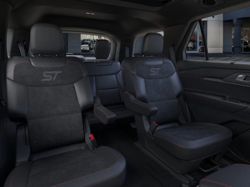 This 2025 Carbonized Gray Metallic Ford Explorer ST 4WD is well equipped and includes these features and benefits: Equipment Group 400A Standard Package, Sun and Sound Package (B&O Sound System by Bang & Olufsen, Multicontour Seats w/Front Active Motion, and Panoramic Vista Roof w/Power Shade), 4WD, 10 Speakers, 3.58 Non-Limited Slip Rear Axle, 3rd row seats: bench, 4-Wheel Disc Brakes, ABS brakes, Air Conditioning, Alloy wheels, AM/FM radio: SiriusXM with 360L, Apple CarPlay/Android Auto, Auto High-beam Headlights, Auto-dimming door mirrors, Auto-dimming Rear-View mirror, Automatic temperature control, Brake assist, Bumpers: body-color, Compass, Delay-off headlights, Driver door bin, Driver vanity mirror, Dual front impact airbags, Dual front side impact airbags, Electronic Stability Control, Emergency communication system: 911 Assist, Exterior Parking Camera Rear, Four wheel independent suspension, Front anti-roll bar, Front Bucket Seats, Front Center Armrest, Front dual zone A/C, Front fog lights, Front License Plate Bracket, Front reading lights, Fully automatic headlights, Garage door transmitter, Heated door mirrors, Heated front seats, Heated rear seats, Heated steering wheel, Heated/Ventilated Miko Sport Captain's Chairs, Illuminated entry, Internet access capable: FordPass Connect 5G, Knee airbag, Leather steering wheel, Low tire pressure warning, Memory seat, Navigation System, Occupant sensing airbag, Outside temperature display, Overhead airbag, Overhead console, Panic alarm, Passenger door bin, Passenger vanity mirror, Power door mirrors, Power driver seat, Power Liftgate, Power passenger seat, Power steering, Power windows, Radio: B&O Sound System by Bang & Olufsen, Rain sensing wipers, Rear air conditioning, Rear anti-roll bar, Rear reading lights, Rear window defroster, Rear window wiper, Remote keyless entry, Security system, Speed control, Speed-sensing steering, Speed-Sensitive Wipers, Split folding rear seat, Spoiler, Sport steering wheel, Steering wheel mounted audio controls, Tachometer, Telescoping steering wheel, Tilt steering wheel, Traction control, Trip computer, Turn signal indicator mirrors, Variably intermittent wipers, Ventilated front seats, and Wheels: 21" Magnetite-Painted Aluminum.