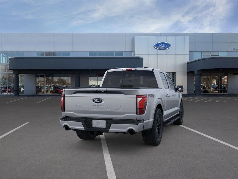 This 2025 Iconic Silver Metallic Ford F-150 Lariat 4WD is well equipped and includes these features and benefits: Equipment Group 501A Mid (Wheels: 20" Chrome-Like PVD), FX4 Off-Road Package (4x4 FX4 Off-Road Bodyside Decal, Hill Descent Control, Monotube Rear Shocks, Off-Road Tuned Front Shock Absorbers, Rock Crawl Mode, and Tray Style Floor Liner w/o Carpet Mats), Mobile Office Package (Console Worksurface, Partitioned Lockable Rear Storage, and Wireless Charging), Tow/Haul Package, 3.5L PowerBoost Full-Hybrid V6, 4WD, 4-Wheel Disc Brakes, 8 Speakers, ABS brakes, ActiveX Trimmed Bucket Seats, Adjustable pedals, Air Conditioning, Alloy wheels, AM/FM radio: SiriusXM with 360L, Auto High-beam Headlights, Auto-dimming door mirrors, Auto-dimming Rear-View mirror, Automatic temperature control, Brake assist, Bumpers: chrome, Chrome wheels, Compass, Delay-off headlights, Driver door bin, Driver vanity mirror, Dual front impact airbags, Dual front side impact airbags, Electronic Stability Control, Emergency communication system: SYNC 4 911 Assist, Front anti-roll bar, Front Bucket Seats, Front Center Armrest, Front dual zone A/C, Front fog lights, Front License Plate Bracket, Front reading lights, Front wheel independent suspension, Fully automatic headlights, Garage door transmitter, Heated door mirrors, Heated front seats, Heated steering wheel, Illuminated entry, Internet access capable: FordPass Connect 5G, Low tire pressure warning, Memory seat, Navigation system: Connected Navigation, Occupant sensing airbag, Outside temperature display, Overhead airbag, Overhead console, Panic alarm, Passenger door bin, Passenger vanity mirror, Pedal memory, Power door mirrors, Power driver seat, Power passenger seat, Power steering, Power windows, Pro Power Onboard - 7.2KW, Radio data system, Radio: B&O Sound System by Bang & Olufsen, Rain sensing wipers, Rear reading lights, Rear seat center armrest, Rear step bumper, Rear window defroster, Remote keyless entry, Security system, Speed control, Split folding rear seat, Steering wheel mounted audio controls, SYNC 4 w/Enhanced Voice Recognition, Tachometer, Telescoping steering wheel, Tilt steering wheel, Traction control, Trip computer, Turn signal indicator mirrors, Variably intermittent wipers, Ventilated front seats, Voltmeter, and Wheels: 18" Chrome-Like PVD.