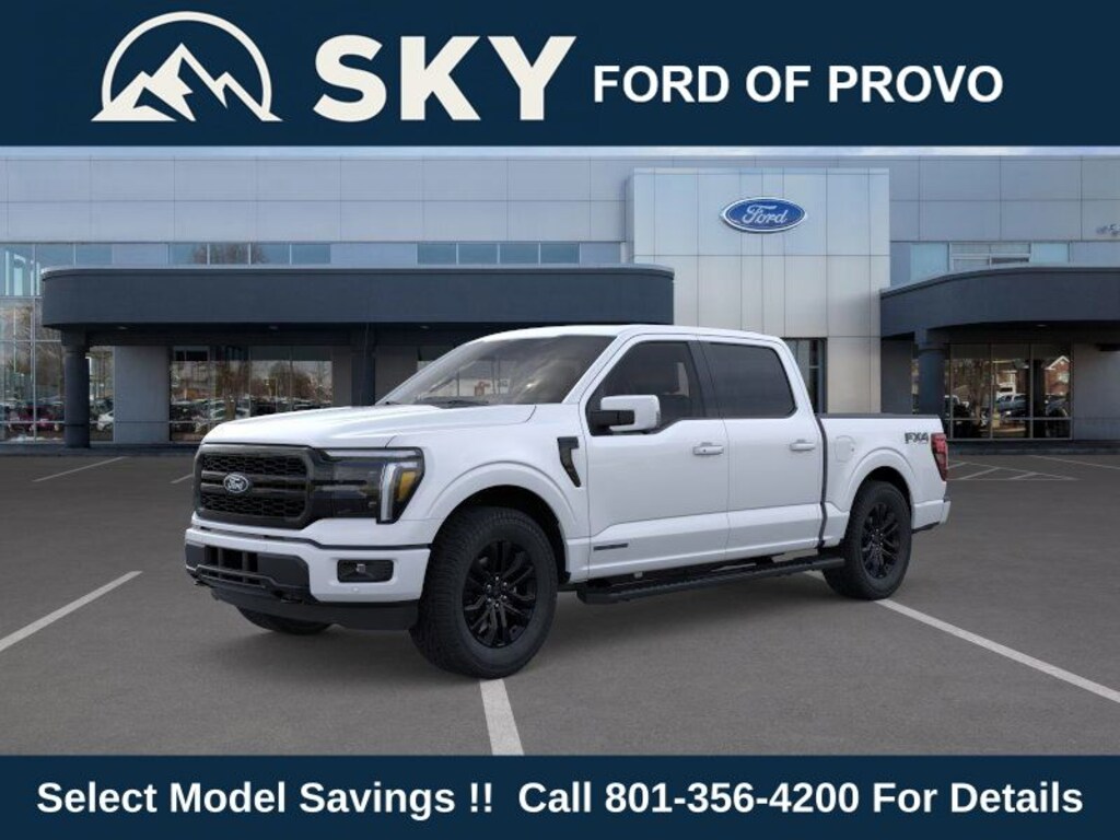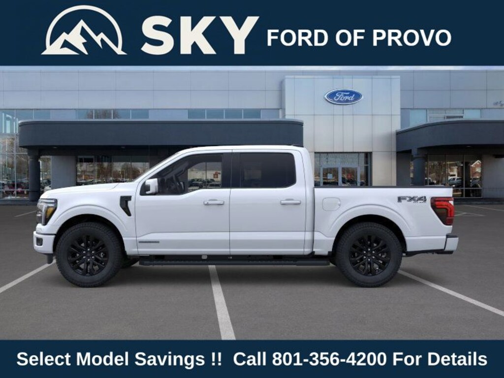 This 2025 Space White Metallic Ford F-150 Lariat 4WD is well equipped and includes these features and benefits: Bed Utility Package (4 Pickup Box Tie-Down Plates, LED Box Lighting, Power Tailgate, and Pro Access Tailgate), Equipment Group 501A Mid (6" Angular Bright Anodized Step Bar and Wheels: 20" Chrome-Like PVD), FX4 Off-Road Package (4x4 FX4 Off-Road Bodyside Decal, Hill Descent Control, Off-Road Tuned Front Shock Absorbers, and Tray Style Floor Liner w/o Carpet Mats), Mobile Office Package, Tow/Haul Package (Integrated Trailer Brake Controller), 3.5L PowerBoost Full-Hybrid V6, 4WD, 4-Wheel Disc Brakes, 6" Extended Running Boards, 8 Speakers, ABS brakes, ActiveX Trimmed Bucket Seats, Adjustable pedals, Air Conditioning, Alloy wheels, AM/FM radio: SiriusXM with 360L, Auto High-beam Headlights, Auto-dimming door mirrors, Auto-dimming Rear-View mirror, Automatic temperature control, Brake assist, Bumpers: chrome, Chrome wheels, Compass, Delay-off headlights, Driver door bin, Driver vanity mirror, Dual front impact airbags, Dual front side impact airbags, Electronic Stability Control, Emergency communication system: SYNC 4 911 Assist, Front anti-roll bar, Front Bucket Seats, Front Center Armrest, Front dual zone A/C, Front fog lights, Front License Plate Bracket, Front reading lights, Front wheel independent suspension, Fully automatic headlights, Garage door transmitter, Heated door mirrors, Heated front seats, Heated steering wheel, Illuminated entry, Low tire pressure warning, Memory seat, Navigation system: Connected Navigation, Occupant sensing airbag, Outside temperature display, Overhead airbag, Overhead console, Panic alarm, Passenger door bin, Passenger vanity mirror, Pedal memory, Power door mirrors, Power driver seat, Power passenger seat, Power steering, Power windows, Pro Power Onboard - 7.2KW, Radio data system, Radio: B&O Sound System by Bang & Olufsen, Rain sensing wipers, Rear reading lights, Rear seat center armrest, Rear step bumper, Rear window defroster, Remote keyless entry, Security system, Speed control, Split folding rear seat, Steering wheel mounted audio controls, SYNC 4 w/Enhanced Voice Recognition, Tachometer, Telescoping steering wheel, Tilt steering wheel, Traction control, Trip computer, Turn signal indicator mirrors, Twin Panel Moonroof, Variably intermittent wipers, Ventilated front seats, Voltmeter, and Wheels: 18" Chrome-Like PVD.