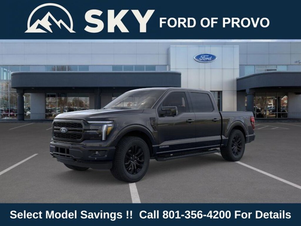 This 2025 Agate Black Metallic Ford F-150 Lariat 4WD is well equipped and includes these features and benefits: Equipment Group 502A High (Ambient Lighting - Ice Blue Color Only, Radio: B&O Unleashed Sound System by Bang & Olufsen, and Wheels: 20" Chrome-Like PVD), FX4 Off-Road Package (4x4 FX4 Off-Road Bodyside Decal, Hill Descent Control, Off-Road Tuned Front Shock Absorbers, and Tray Style Floor Liner w/o Carpet Mats), Mobile Office Package, Tow/Haul Package (Integrated Trailer Brake Controller), 3.5L PowerBoost Full-Hybrid V6, 4WD, 4-Wheel Disc Brakes, 6" Angular Bright Anodized Step Bar, 8 Speakers, ABS brakes, ActiveX Trimmed Bucket Seats, Adjustable pedals, Air Conditioning, Alloy wheels, AM/FM radio: SiriusXM with 360L, Auto High-beam Headlights, Auto-dimming door mirrors, Auto-dimming Rear-View mirror, Automatic temperature control, Brake assist, Bumpers: chrome, Chrome wheels, Compass, Delay-off headlights, Driver door bin, Driver vanity mirror, Dual front impact airbags, Dual front side impact airbags, Electronic Stability Control, Emergency communication system: SYNC 4 911 Assist, Front anti-roll bar, Front Bucket Seats, Front Center Armrest, Front dual zone A/C, Front fog lights, Front License Plate Bracket, Front reading lights, Front wheel independent suspension, Fully automatic headlights, Garage door transmitter, Heated door mirrors, Heated front seats, Heated steering wheel, Illuminated entry, Low tire pressure warning, Memory seat, Navigation system: Connected Navigation, Occupant sensing airbag, Outside temperature display, Overhead airbag, Overhead console, Panic alarm, Passenger door bin, Passenger vanity mirror, Pedal memory, Power door mirrors, Power driver seat, Power passenger seat, Power steering, Power windows, Radio data system, Radio: B&O Sound System by Bang & Olufsen, Rain sensing wipers, Rear reading lights, Rear seat center armrest, Rear step bumper, Rear window defroster, Remote keyless entry, Security system, Speed control, Split folding rear seat, Steering wheel mounted audio controls, SYNC 4 w/Enhanced Voice Recognition, Tachometer, Telescoping steering wheel, Tilt steering wheel, Traction control, Trip computer, Turn signal indicator mirrors, Twin Panel Moonroof, Variably intermittent wipers, Ventilated front seats, Voltmeter, and Wheels: 18" Chrome-Like PVD.
