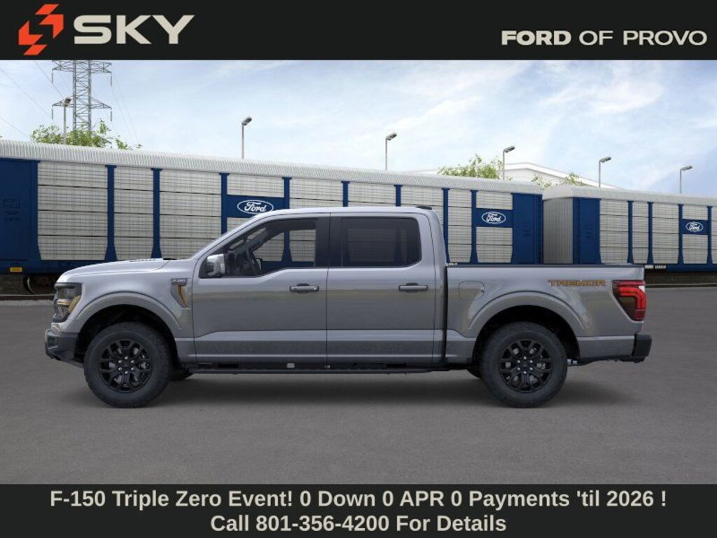 This 2025 Carbonized Gray Metallic Ford F-150 Tremor 4WD is well equipped and includes these features and benefits: GVWR: 7,100 lbs Payload Package, 4WD, 4-Wheel Disc Brakes, 8 Speakers, ABS brakes, Adjustable pedals, Air Conditioning, Alloy wheels, AM/FM radio: SiriusXM with 360L, Auto High-beam Headlights, Auto-dimming door mirrors, Auto-dimming Rear-View mirror, Automatic temperature control, Brake assist, Bumpers: body-color, Compass, Delay-off headlights, Driver door bin, Driver vanity mirror, Dual front impact airbags, Dual front side impact airbags, Electronic Locking w/3.73 Axle Ratio, Electronic Stability Control, Emergency communication system: SYNC 4 911 Assist, Front anti-roll bar, Front Bucket Seats, Front Center Armrest, Front dual zone A/C, Front fog lights, Front reading lights, Front wheel independent suspension, Fully automatic headlights, Heated door mirrors, Heated front seats, Illuminated entry, Low tire pressure warning, Navigation system: Connected Navigation, Occupant sensing airbag, Outside temperature display, Overhead airbag, Overhead console, Panic alarm, Passenger door bin, Passenger vanity mirror, Power door mirrors, Power driver seat, Power passenger seat, Power steering, Power windows, Radio data system, Radio: B&O Sound System by Bang & Olufsen, Rear reading lights, Rear step bumper, Rear window defroster, Remote keyless entry, Security system, Speed control, Split folding rear seat, Steering wheel mounted audio controls, SYNC 4 w/Enhanced Voice Recognition, Tachometer, Telescoping steering wheel, Tilt steering wheel, Traction control, Trip computer, Turn signal indicator mirrors, Unique Sport Cloth 40/Console/40 Power Front Seat, Variably intermittent wipers, Voltmeter, and Wheels: 18" Alloy w/Dark Matte Finish.
