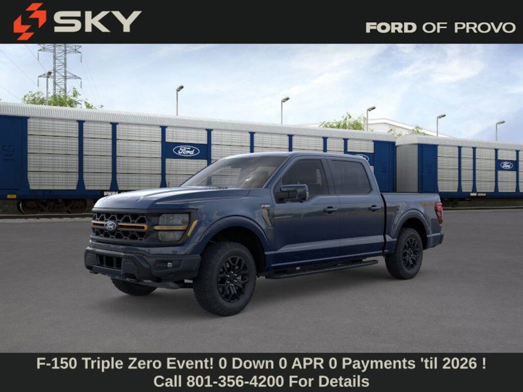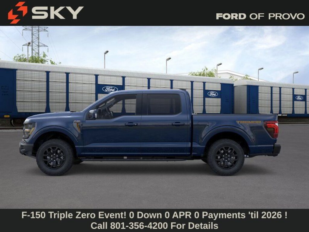This 2025 Antimatter Blue Metallic Ford F-150 Tremor 4WD is well equipped and includes these features and benefits: GVWR: 7,100 lbs Payload Package, 4WD, 4-Wheel Disc Brakes, 8 Speakers, ABS brakes, Adjustable pedals, Air Conditioning, Alloy wheels, AM/FM radio: SiriusXM with 360L, Auto High-beam Headlights, Auto-dimming door mirrors, Auto-dimming Rear-View mirror, Automatic temperature control, Brake assist, Bumpers: body-color, Compass, Delay-off headlights, Driver door bin, Driver vanity mirror, Dual front impact airbags, Dual front side impact airbags, Electronic Locking w/3.73 Axle Ratio, Electronic Stability Control, Emergency communication system: SYNC 4 911 Assist, Front anti-roll bar, Front Bucket Seats, Front Center Armrest, Front dual zone A/C, Front fog lights, Front reading lights, Front wheel independent suspension, Fully automatic headlights, Heated door mirrors, Heated front seats, Illuminated entry, Low tire pressure warning, Navigation system: Connected Navigation, Occupant sensing airbag, Outside temperature display, Overhead airbag, Overhead console, Panic alarm, Passenger door bin, Passenger vanity mirror, Power door mirrors, Power driver seat, Power passenger seat, Power steering, Power windows, Radio data system, Radio: B&O Sound System by Bang & Olufsen, Rear reading lights, Rear step bumper, Rear window defroster, Remote keyless entry, Security system, Speed control, Split folding rear seat, Steering wheel mounted audio controls, SYNC 4 w/Enhanced Voice Recognition, Tachometer, Telescoping steering wheel, Tilt steering wheel, Traction control, Trip computer, Turn signal indicator mirrors, Unique Sport Cloth 40/Console/40 Power Front Seat, Variably intermittent wipers, Voltmeter, and Wheels: 18" Alloy w/Dark Matte Finish.