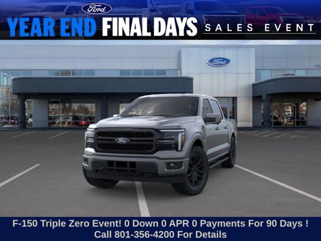 This 2025 Gray Metallic Ford F-150 Lariat 4WD is well equipped and includes these features and benefits: Equipment Group 502A High (2nd Row Heated Seats, Ambient Lighting - Ice Blue Color Only, Heads-Up Display, Illuminated Driver & Passenger Visors, Power-Sliding Rear Window, Radio: B&O Unleashed Sound System by Bang & Olufsen, and Wheels: 20" Chrome-Like PVD), Mobile Office Package (Console Worksurface, Partitioned Lockable Rear Storage, and Wireless Charging), Tow/Haul Package, 4WD, 4-Wheel Disc Brakes, 8 Speakers, ABS brakes, ActiveX Trimmed Bucket Seats, Adjustable pedals, Air Conditioning, Alloy wheels, AM/FM radio: SiriusXM with 360L, Auto High-beam Headlights, Auto-dimming door mirrors, Auto-dimming Rear-View mirror, Automatic temperature control, Brake assist, Bumpers: chrome, Chrome wheels, Compass, Delay-off headlights, Driver door bin, Driver vanity mirror, Dual front impact airbags, Dual front side impact airbags, Electronic Stability Control, Emergency communication system: SYNC 4 911 Assist, Front anti-roll bar, Front Bucket Seats, Front Center Armrest, Front dual zone A/C, Front fog lights, Front License Plate Bracket, Front reading lights, Front wheel independent suspension, Fully automatic headlights, Garage door transmitter, Heated door mirrors, Heated front seats, Heated steering wheel, Illuminated entry, Internet access capable: FordPass Connect 5G, Low tire pressure warning, Memory seat, Navigation system: Connected Navigation, Occupant sensing airbag, Outside temperature display, Overhead airbag, Overhead console, Panic alarm, Passenger door bin, Passenger vanity mirror, Pedal memory, Power door mirrors, Power driver seat, Power passenger seat, Power steering, Power windows, Radio data system, Radio: B&O Sound System by Bang & Olufsen, Rain sensing wipers, Rear reading lights, Rear seat center armrest, Rear step bumper, Rear window defroster, Remote keyless entry, Security system, Speed control, Split folding rear seat, Steering wheel mounted audio controls, SYNC 4 w/Enhanced Voice Recognition, Tachometer, Telescoping steering wheel, Tilt steering wheel, Traction control, Trip computer, Turn signal indicator mirrors, Variably intermittent wipers, Ventilated front seats, Voltmeter, and Wheels: 18" Chrome-Like PVD.