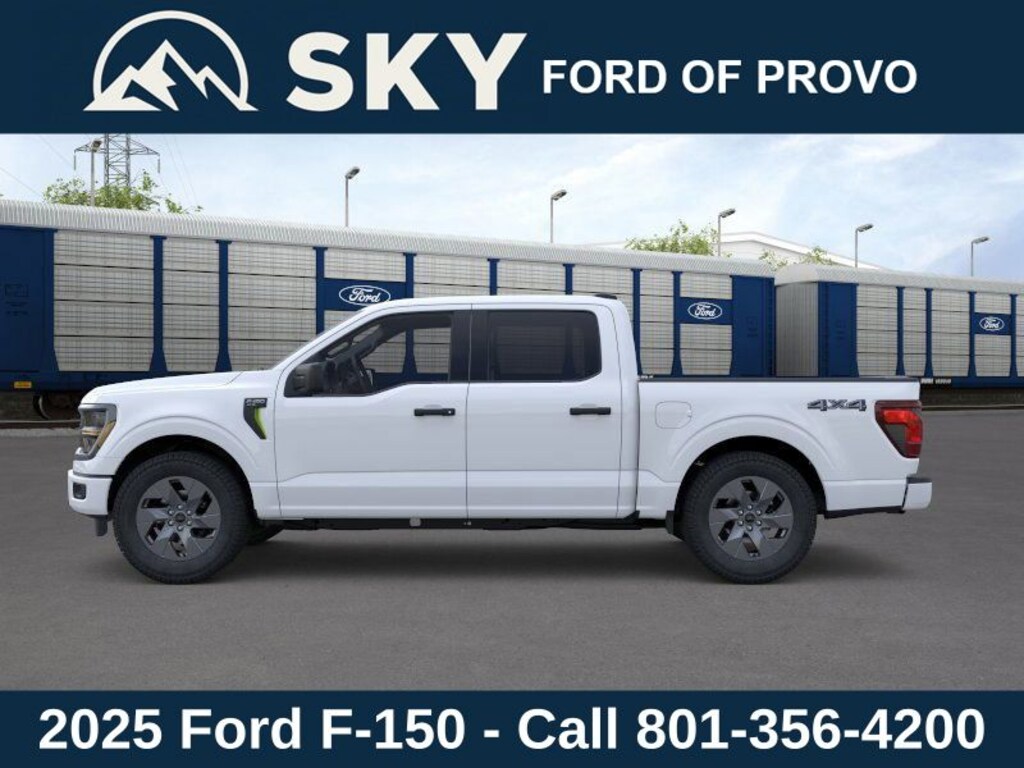 This 2025 Oxford White Ford F-150 STX 4WD is well equipped and includes these features and benefits: GVWR: 6,650 lbs Payload Package, 4WD, 3.55 Axle Ratio, 4-Wheel Disc Brakes, 6 Speakers, ABS brakes, Air Conditioning, Alloy wheels, AM/FM radio: SiriusXM with 360L, Auto High-beam Headlights, Brake assist, Bumpers: body-color, Compass, Delay-off headlights, Driver door bin, Dual front impact airbags, Dual front side impact airbags, Electronic Stability Control, Emergency communication system: SYNC 4 911 Assist, Front anti-roll bar, Front Bucket Seats, Front Center Armrest, Front reading lights, Front wheel independent suspension, Fully automatic headlights, Heated door mirrors, Illuminated entry, Low tire pressure warning, Occupant sensing airbag, Outside temperature display, Overhead airbag, Overhead console, Panic alarm, Passenger door bin, Passenger vanity mirror, Power door mirrors, Power steering, Power windows, Radio data system, Radio: AM/FM Stereo w/SiriusXM 360L, Rear Parking Sensors, Rear step bumper, Rear window defroster, Remote keyless entry, Security system, Speed control, Split folding rear seat, Steering wheel mounted audio controls, SYNC 4 w/Enhanced Voice Recognition, Tachometer, Telescoping steering wheel, Tilt steering wheel, Traction control, Trip computer, Variably intermittent wipers, Voltmeter, and Wheels: 18" Gloss Black.