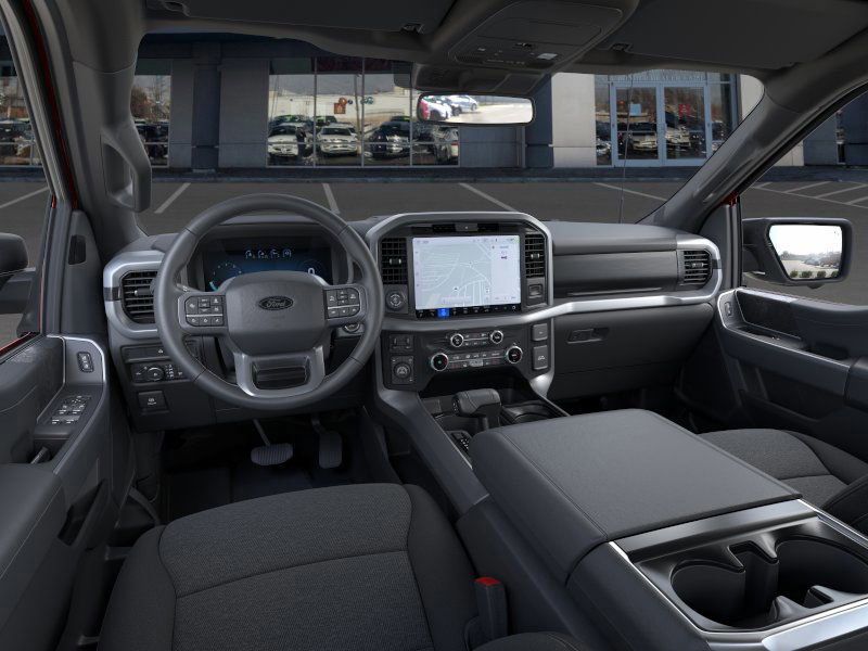 This 2025 Rapid Red Metallic Tinted Clearcoat Ford F-150 XLT 4WD is well equipped and includes these features and benefits: 4WD, 3.31 Axle Ratio, 4-Wheel Disc Brakes, 6 Speakers, ABS brakes, Air Conditioning, Alloy wheels, AM/FM radio: SiriusXM with 360L, Auto High-beam Headlights, Brake assist, Bumpers: chrome, Chrome wheels, Cloth 40/20/40 Front Seat, Compass, Delay-off headlights, Driver door bin, Driver vanity mirror, Dual front impact airbags, Dual front side impact airbags, Electronic Stability Control, Emergency communication system: SYNC 4 911 Assist, Front anti-roll bar, Front Center Armrest, Front fog lights, Front reading lights, Front wheel independent suspension, Fully automatic headlights, Heated door mirrors, Illuminated entry, Low tire pressure warning, Occupant sensing airbag, Outside temperature display, Overhead airbag, Overhead console, Panic alarm, Passenger door bin, Passenger vanity mirror, Power door mirrors, Power steering, Power windows, Radio data system, Radio: AM/FM Stereo w/SiriusXM 360L, Rear Parking Sensors, Rear reading lights, Rear step bumper, Rear window defroster, Remote keyless entry, Security system, Speed control, Split folding rear seat, Steering wheel mounted audio controls, SYNC 4 w/Enhanced Voice Recognition, Tachometer, Telescoping steering wheel, Tilt steering wheel, Traction control, Trip computer, Variably intermittent wipers, Voltmeter, and Wheels: 18" Chrome-Like PVD.