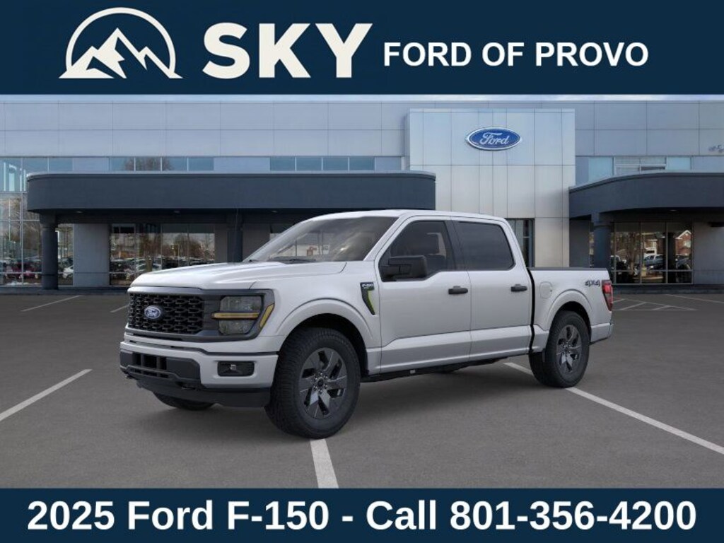 This 2025 Iconic Silver Metallic Ford F-150 STX 4WD is well equipped and includes these features and benefits: GVWR: 6,650 lbs Payload Package, 4WD, 3.55 Axle Ratio, 4-Wheel Disc Brakes, 6 Speakers, ABS brakes, Air Conditioning, Alloy wheels, AM/FM radio: SiriusXM with 360L, Auto High-beam Headlights, Brake assist, Bumpers: body-color, Compass, Delay-off headlights, Driver door bin, Dual front impact airbags, Dual front side impact airbags, Electronic Stability Control, Emergency communication system: SYNC 4 911 Assist, Front anti-roll bar, Front Bucket Seats, Front Center Armrest, Front reading lights, Front wheel independent suspension, Fully automatic headlights, Heated door mirrors, Illuminated entry, Low tire pressure warning, Occupant sensing airbag, Outside temperature display, Overhead airbag, Overhead console, Panic alarm, Passenger door bin, Passenger vanity mirror, Power door mirrors, Power steering, Power windows, Radio data system, Radio: AM/FM Stereo w/SiriusXM 360L, Rear Parking Sensors, Rear step bumper, Rear window defroster, Remote keyless entry, Security system, Speed control, Split folding rear seat, Steering wheel mounted audio controls, SYNC 4 w/Enhanced Voice Recognition, Tachometer, Telescoping steering wheel, Tilt steering wheel, Traction control, Trip computer, Variably intermittent wipers, Voltmeter, and Wheels: 18" Gloss Black.