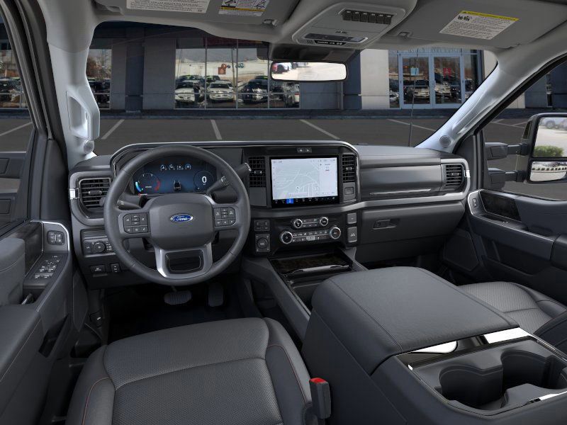 This 2025 Oxford White Ford F-350 SuperDuty Lariat 4WD is well equipped and includes these features and benefits: Black Appearance Package (6" Ebony Black Angular Running Boards, Black Painted Front Grille Surround, Body Color Front and Rear Bumpers, and Ebony Black Painted Mirror Caps), FX4 Off-Road Package (Hill Descent Control, Off-Road Specifically Tuned Shock Absorbers, and Unique FX4 Off-Road Box Decal), Order Code 618A (Flow-Through Console, Front ActiveX Trimmed 40/Console/40 Seats, Radio: B&O Sound System by Bang and Olufsen, SiriusXM Radio with 360L, SYNC 4 with Enhanced Voice Recognition, and Wheels: 18" Bright Machined and Carbonized Gray Aluminum), 4WD, 190 Amp Alternator, 4-Wheel Disc Brakes, 410 Amp Dual Alternators, 8 Speakers, ABS brakes, Adjustable pedals, Air Conditioning, Alloy wheels, AM/FM radio: SiriusXM with 360L, Auto High-beam Headlights, Auto-dimming Rear-View mirror, Automatic temperature control, BLIS with Cross-Traffic Alert, Brake assist, Bumpers: chrome, Compass, Delay-off headlights, Driver door bin, Driver vanity mirror, Dual AGM 68 AH Battery, Dual front impact airbags, Dual front side impact airbags, Electronic Stability Control, Emergency communication system: SYNC 4 911 Assist, Engine Block Heater, Front anti-roll bar, Front Bucket Seats, Front Center Armrest, Front dual zone A/C, Front fog lights, Front License Plate Bracket, Front reading lights, Fully automatic headlights, Garage door transmitter, Heated door mirrors, Heated front seats, Heated rear seats, Heated steering wheel, Illuminated entry, Internet access capable: FordPass Connect 5G, Low tire pressure warning, Memory seat, Navigation System, Outside temperature display, Overhead airbag, Overhead console, Panic alarm, Passenger door bin, Passenger vanity mirror, Pedal memory, Power door mirrors, Power driver seat, Power passenger seat, Power steering, Power windows, Power-Sliding Rear-Window with Defrost, Privacy Glass, Pro Power Onboard - 2kW, Rain sensing wipers, Rapid-Heat Supplemental Cab Heater, Rear Parking Sensors, Rear reading lights, Rear seat center armrest, Rear step bumper, Rear window defroster, Remote keyless entry, Security system, Speed control, Split folding rear seat, Steering wheel mounted audio controls, Tachometer, Tailgate Step and Handle, Telescoping steering wheel, Tilt steering wheel, Traction control, Trip computer, Turn signal indicator mirrors, Upfitter Switches (6), Variably intermittent wipers, and Ventilated front seats.