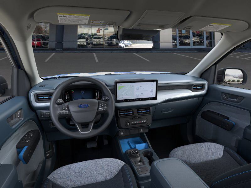 This 2025 Velocity Blue Ford Maverick XLT AWD is well equipped and includes these features and benefits: 4K Tow Package (Trailer Brake Controller, Trailer Hitch (Class III) 2" Receiver, Transmission Oil Cooler, and Upgraded Cooling Fan), Equipment Group 301A, Ford Co-Pilot360 1.0 (Auto High Beams, BLIS w/Cross-Traffic Alert, Cross Traffic Brake Assist, Evasive Steering Assist, Intersection Assist, Lane-Keeping System, Power Glass Manual-Folding Mirrors, Pre-Collision Assist w/Automatic Emergency Braking, Rear Parking Sensors, and Rear-View Camera), 2.5L I-4 Hybrid, 2.91 Axle Ratio, 4-Wheel Disc Brakes, 6 Speakers, ABS brakes, Air Conditioning, Alloy wheels, AM/FM radio: SiriusXM with 360L, Apple CarPlay/Android Auto, Auto High-beam Headlights, Automatic temperature control, Brake assist, Bumpers: body-color, Compass, Delay-off headlights, Driver door bin, Driver vanity mirror, Dual front impact airbags, Dual front side impact airbags, Electronic Stability Control, Emergency communication system: SYNC 4 911 Assist, Exterior Parking Camera Rear, Four wheel independent suspension, Front anti-roll bar, Front Bucket Seats, Front Center Armrest, Front reading lights, Fully automatic headlights, Illuminated entry, Internet access capable: FordPass Connect 5G, Knee airbag, Low tire pressure warning, Occupant sensing airbag, Outside temperature display, Overhead airbag, Overhead console, Panic alarm, Passenger door bin, Passenger vanity mirror, Power door mirrors, Power steering, Power windows, Radio data system, Radio: AM/FM Stereo w/6 Speakers, Rear anti-roll bar, Rear seat center armrest, Rear step bumper, Remote keyless entry, Security system, SiriusXM w/360L, Speed control, Speed-sensing steering, Steering wheel mounted audio controls, SYNC 4 w/Enhanced Voice Recognition, Telescoping steering wheel, Tilt steering wheel, Traction control, Trip computer, Unique Cloth Front Bucket Seats, and Wheels: 17" Carbonized Gray Painted Aluminum.