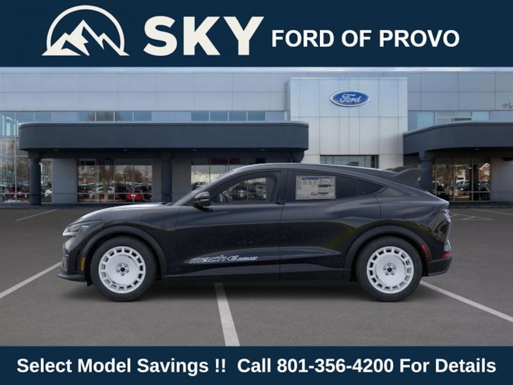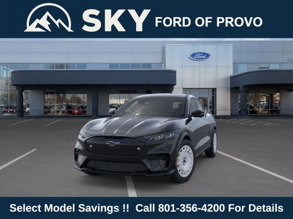 This 2025 Shadow Black Ford Mustang Mach-E GT AWD is well equipped and includes these features and benefits: Equipment Group 400A Standard Package, Mustang Mach-E Rally (Black Painted Steel Roof, Door, Wheel, Roof & Bumper Trim, Ford Performance Front Seats, Hood & Decklid Stripes, Mach-E Rally Door Graphics, Mustang Mach-E GT Performance Upgrade, Oxford White Steering Wheel/Door/IP Interior Trim, Rallycross-Tuned MagneRide Damping System, RallySport Drive Mode, Sport Pedals, Unique Front Splitter in Dark Carbonized Gray, Unique Grille Shield in Dark Carbonized Gray, Unique Raised Rear Spoiler in Dark Carbonized Gray, and Wheels: 19" High Gloss Oxford White), 10 Speakers, 4-Wheel Disc Brakes, ABS brakes, Adaptive suspension, Air Conditioning, Alloy wheels, AM/FM radio: SiriusXM with 360L, Apple CarPlay/Android Auto, Auto High-beam Headlights, Auto-dimming Rear-View mirror, Automatic temperature control, Brake assist, Bumpers: body-color, Compass, Delay-off headlights, Driver door bin, Driver vanity mirror, Dual front impact airbags, Dual front side impact airbags, Electronic Stability Control, Emergency communication system: 911 Assist, Exterior Parking Camera Rear, Four wheel independent suspension, Front anti-roll bar, Front Bucket Seats, Front Center Armrest, Front dual zone A/C, Front License Plate Bracket, Front reading lights, Fully automatic headlights, Garage door transmitter, Heated door mirrors, Heated front seats, Heated Perforated ActiveX Performance Seats, Heated steering wheel, Hood & Decklid Stripe/Door Graphics Delete, Illuminated entry, Knee airbag, Low tire pressure warning, Memory seat, Mobile Power Cord (120V/240V), Navigation system: Connected Navigation, Occupant sensing airbag, Outside temperature display, Overhead airbag, Overhead console, Panic alarm, Passenger door bin, Passenger vanity mirror, Power door mirrors, Power driver seat, Power Liftgate, Power passenger seat, Power steering, Power windows, Radio data system, Radio: B&O Sound System by Bang & Olufsen, Rain sensing wipers, Rear anti-roll bar, Rear seat center armrest, Rear side impact airbag, Rear window defroster, Rear window wiper, Remote keyless entry, Security system, SiriusXM w/360L, Speed control, Speed-sensing steering, Speed-Sensitive Wipers, Split folding rear seat, Spoiler, Steering wheel mounted audio controls, SYNC 4A w/Enhanced Voice Recognition, Telescoping steering wheel, Tilt steering wheel, Traction control, Trip computer, Turn signal indicator mirrors, Variably intermittent wipers, and Wheels: 20" Monochromatic High Gloss Black-Painted.